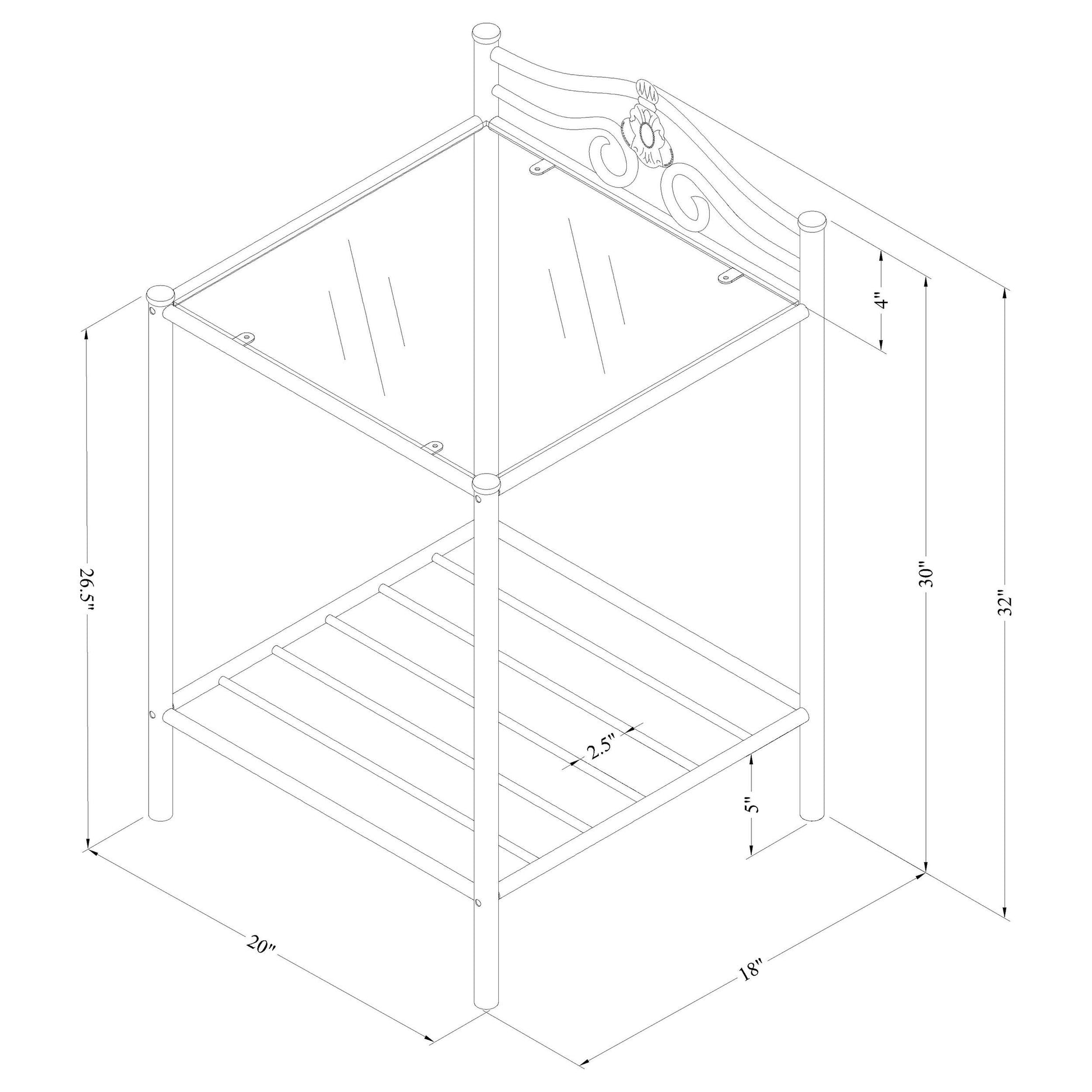 - Two open shelves for easy storage and display