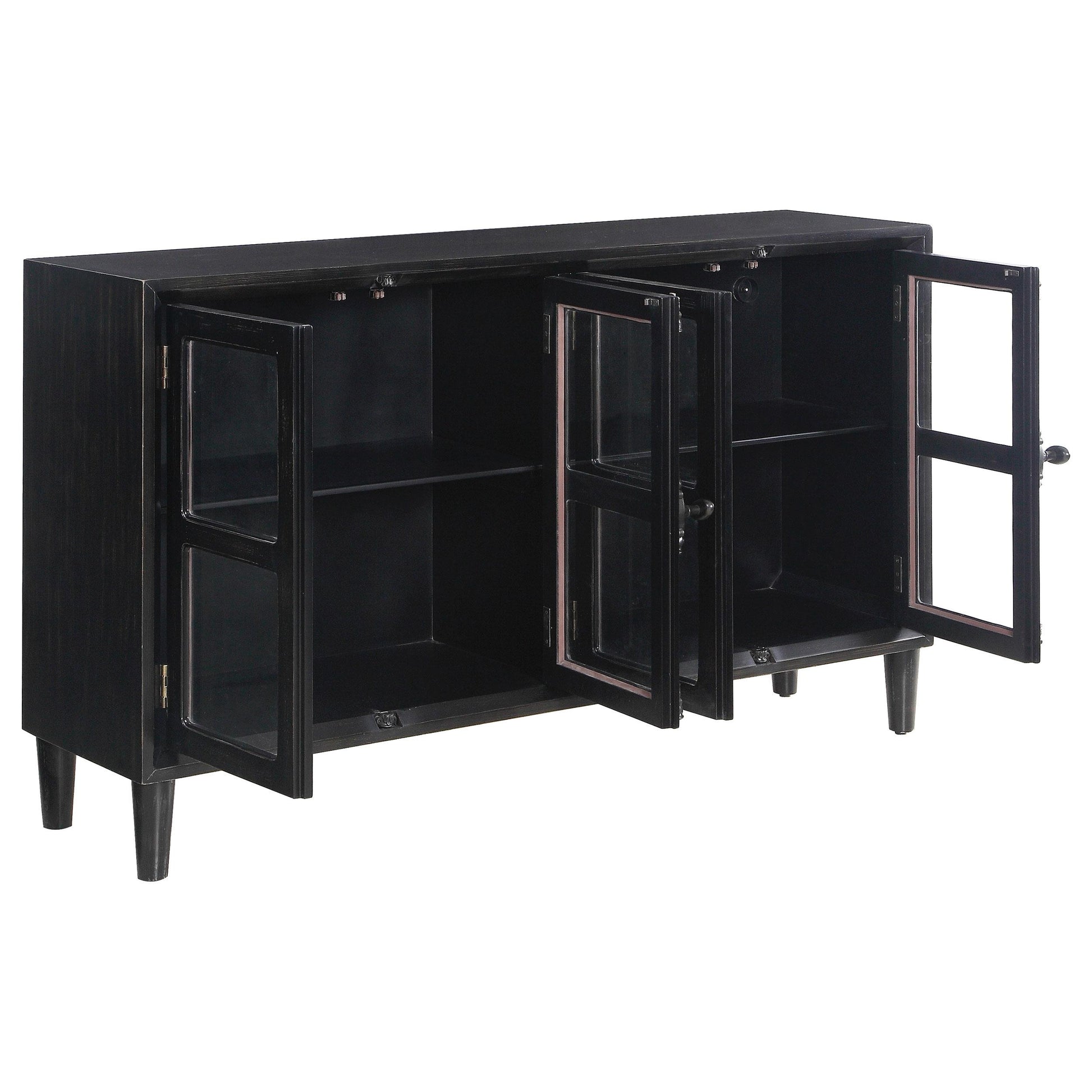 Sylvia 4-door Wood Lattice Accent Storage Cabinet Black