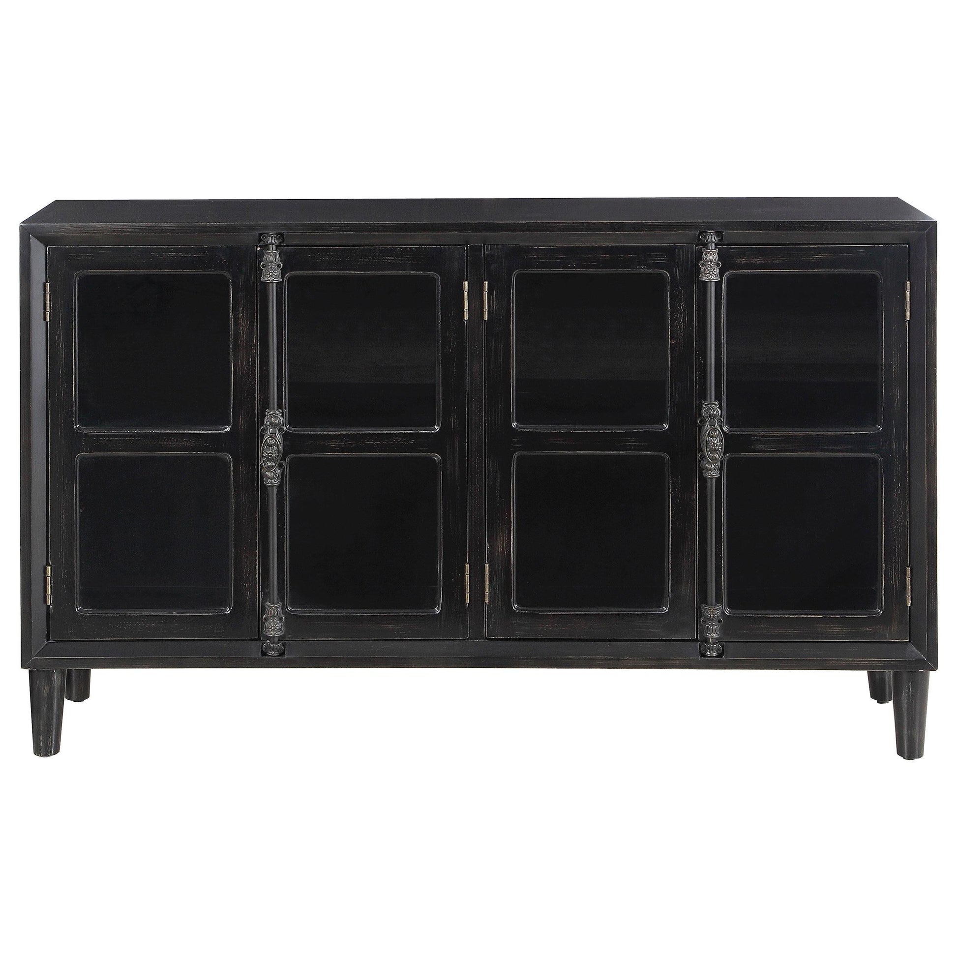 The Sylvia 4-Door Wood Lattice Accent Storage Cabinet in Black offers a stylish, functional storage solution for living rooms, entryways, dining areas, or hallways. With its wood lattice fronts and rich black finish, it delivers classic charm and versatile organization in one compact piece.