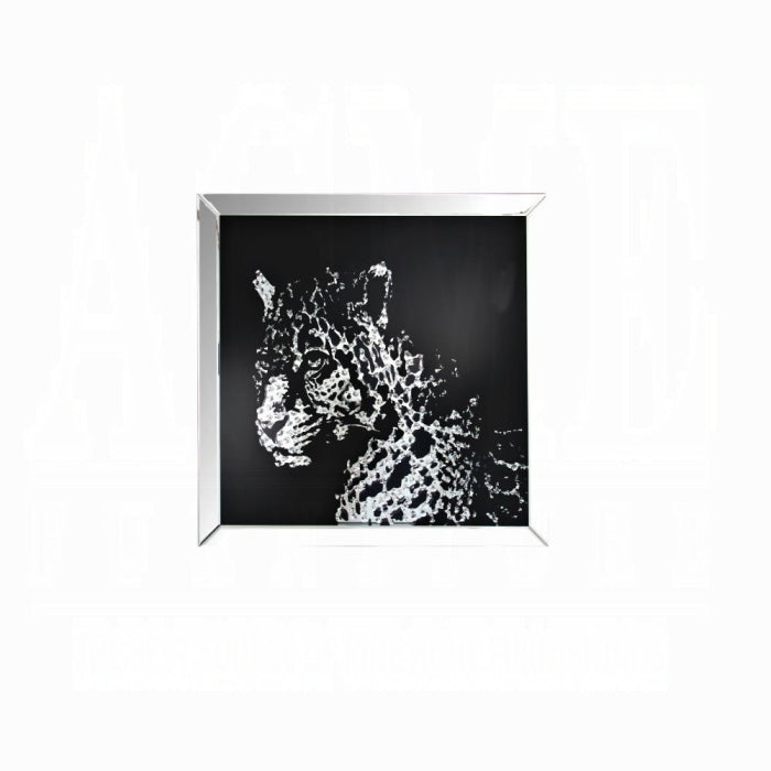 Talisha Wall Art is a crystal wall mirror designed to be the focal point of any room. Dramatically cast with a leopard-shaped mirror against a black backdrop, it delivers bold contrast and a striking silhouette. Adorned with faceted optic glass crystals, the piece radiates luxe brilliance. To complete the look, a beveled edge finishes the piece with refined detail.