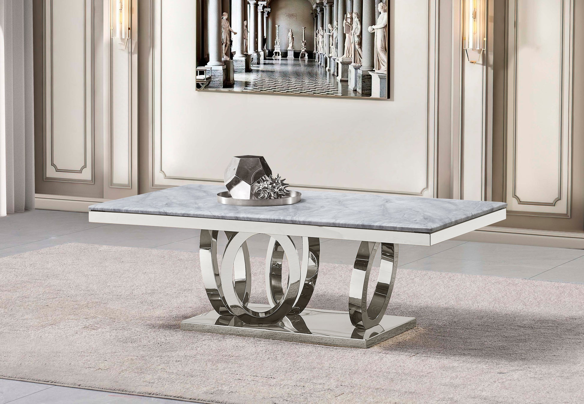 The marble top delivers timeless elegance while the sturdy chrome base ensures solid support. The intertwined oval design adds structural stability and a distinctive look that remains stylish over time. This table offers strong value with competitive pricing in its category, pairing premium materials with a refined aesthetic.