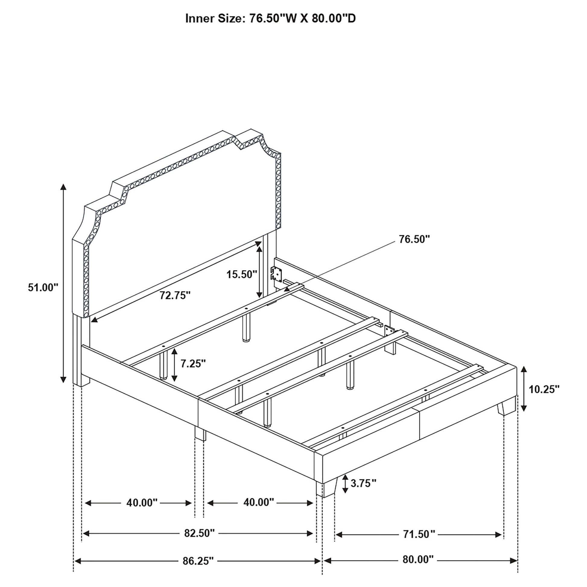 - Eastern King panel bed silhouette with a softly upholstered headboard