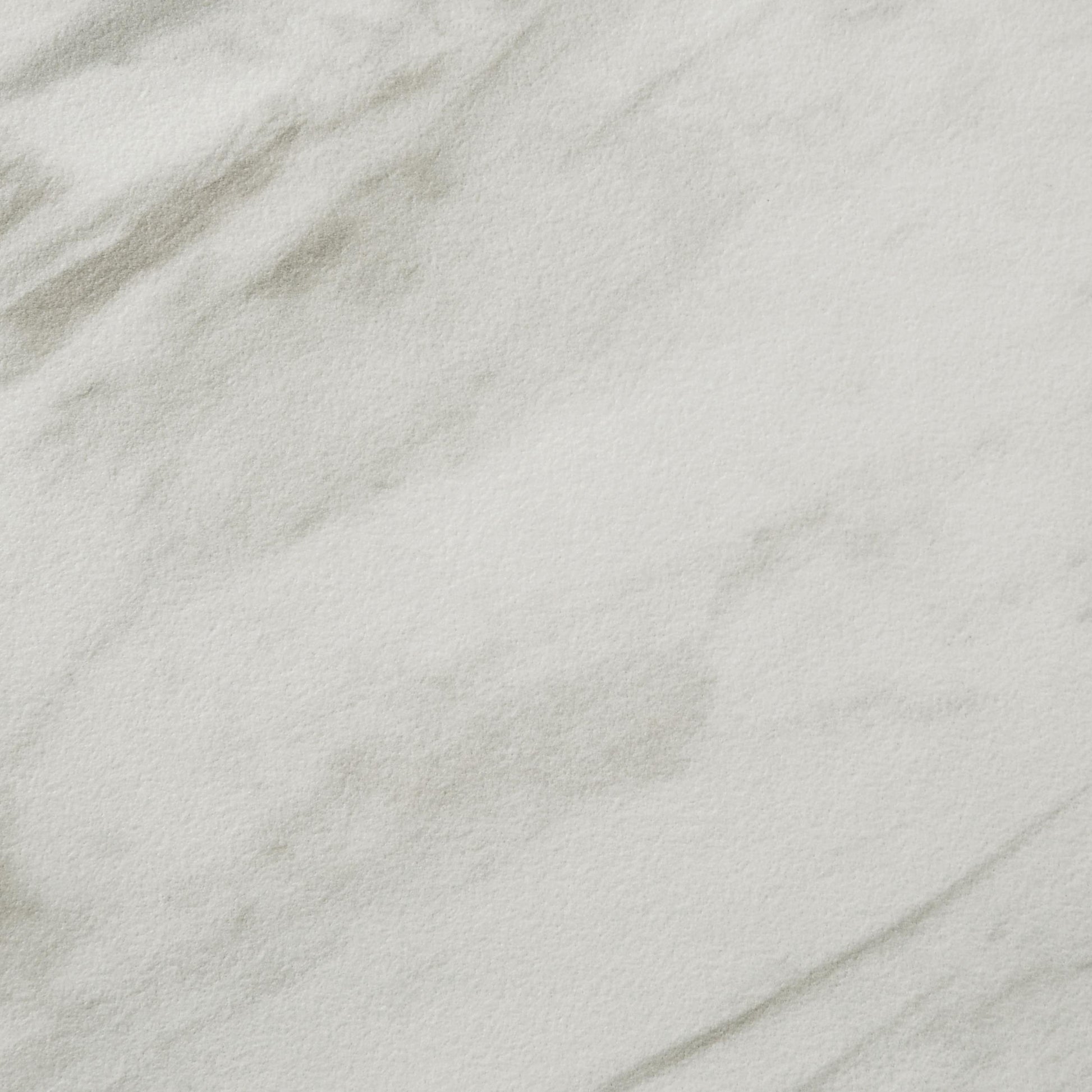 - Round faux marble top in crisp white and bold black accents