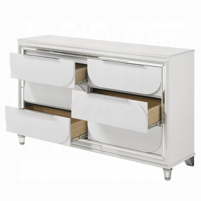 The Tarian Dresser adds stylish glamour with a refined touch of glitz to your bedroom. Sturdily crafted for long-term use, this dresser comes in a fresh, alluring pearl white finish. Six deep drawers offer ample storage to keep your space organized and tidy.