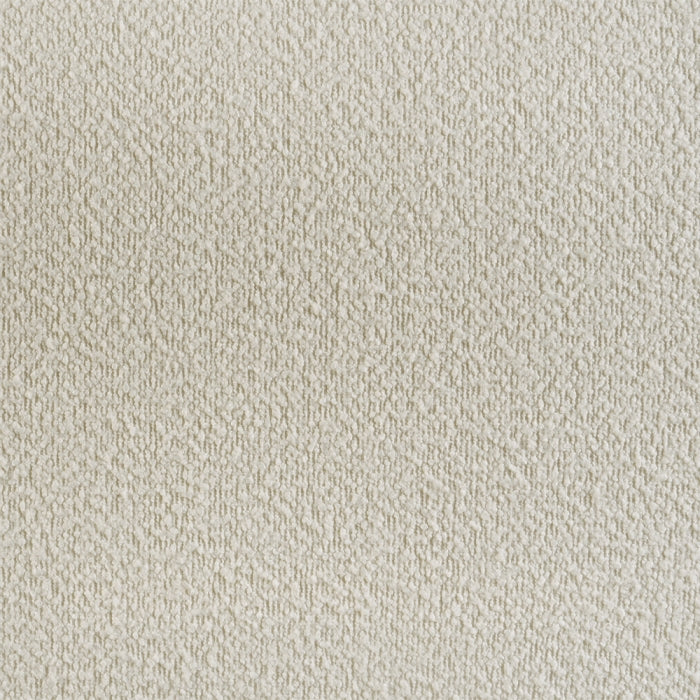 - Boucle-padded headboard adds soft texture and comfort.