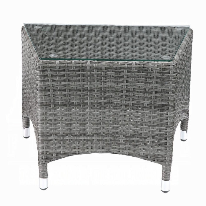 - Materials: Resin Wicker, Glass, Aluminum, Upholstered (Seat)