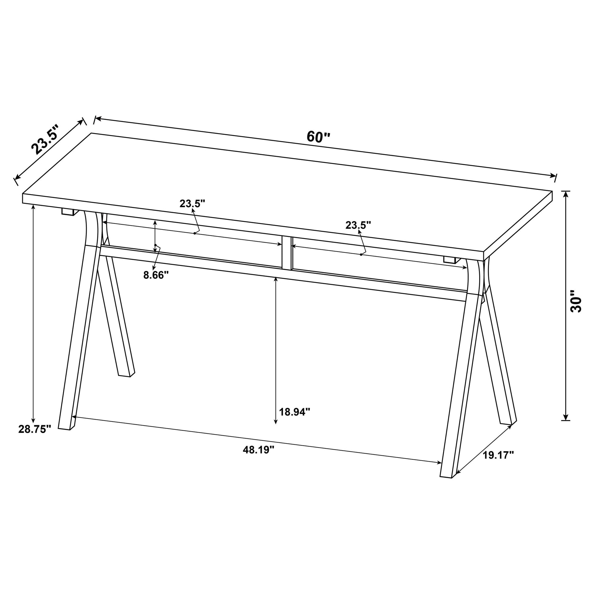 - 60-inch workspace for laptop, monitor, and paperwork with room to spare.