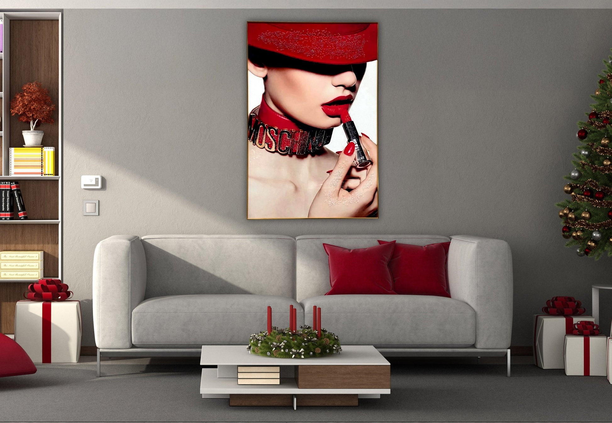 Temptation Artwork is a high-fashion print designed to make a bold statement in any refined space. It captures a mysterious woman wearing a red hat and lipstick, exuding luxury, confidence, and intrigue. This piece is ideal for living rooms, bedrooms, or gallery-inspired walls where contemporary elegance is prized.