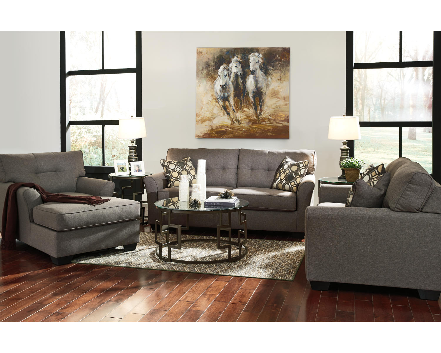 Tibbee Sofa and Loveseat with Chaise — Slate