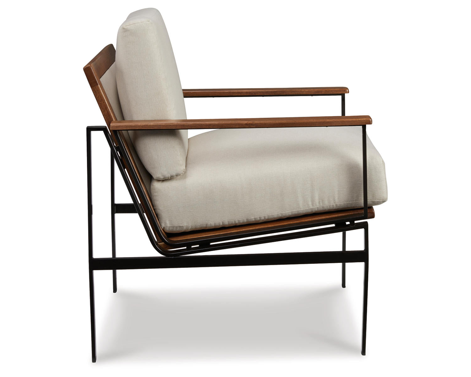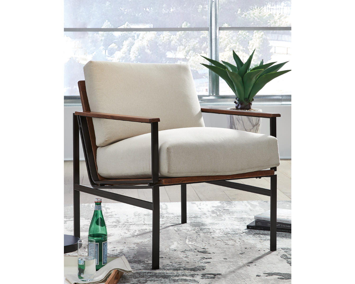 Introducing the Tilden Accent Chair, a versatile seating piece designed to elevate living spaces. This two-tone ivory/brown chair blends classic lines with contemporary flair, making it a great addition for living rooms, bedrooms, or entryways. Its compact footprint and timeless silhouette ensure it pairs easily with a range of decors.