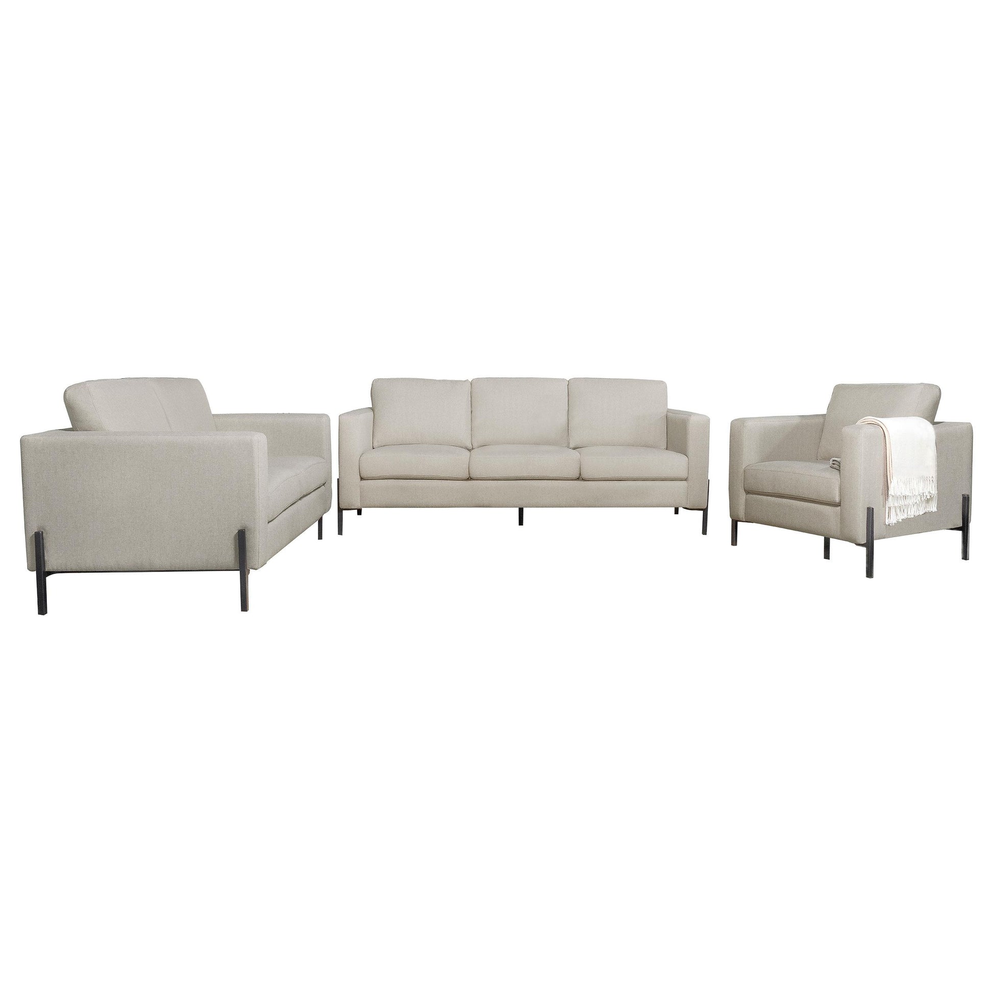 Introducing the Tilly 3-piece upholstered track arm sofa set in oatmeal—an approachable, modern seating solution for living rooms, dens, or open-plan spaces. This cohesive set blends clean lines with comfortable, versatile styling, designed to adapt to a range of décor. The three-piece configuration lets you tailor your layout to fit your space and everyday life.