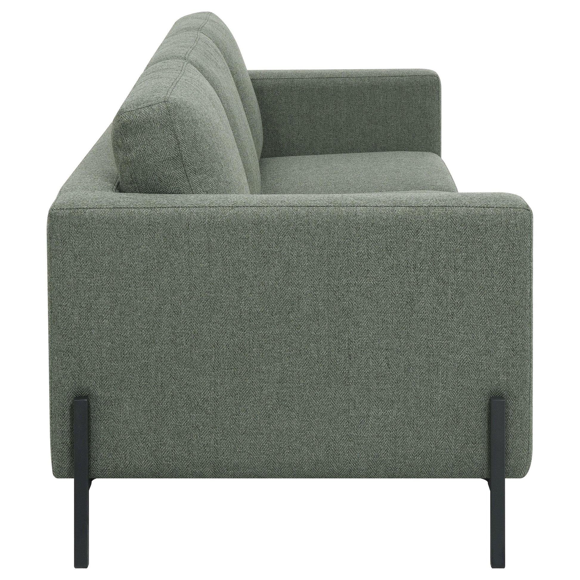 Meet the Tilly Upholstered Track Arm Sofa in Sage—a versatile piece designed for modern living rooms and lounges. Its clean lines and neutral sage hue blend effortlessly with a variety of décors, while offering everyday comfort for relaxing, entertaining, and lounging.