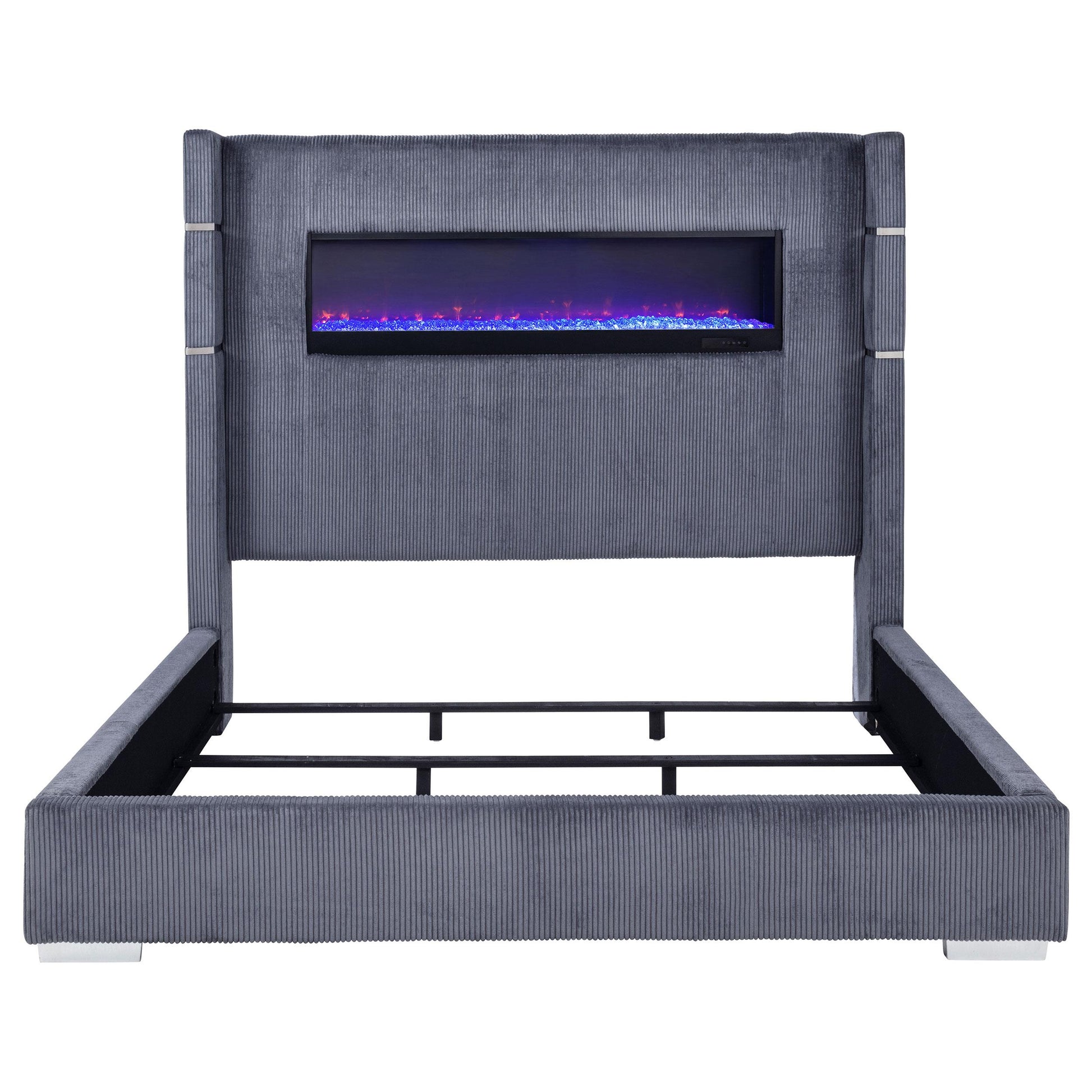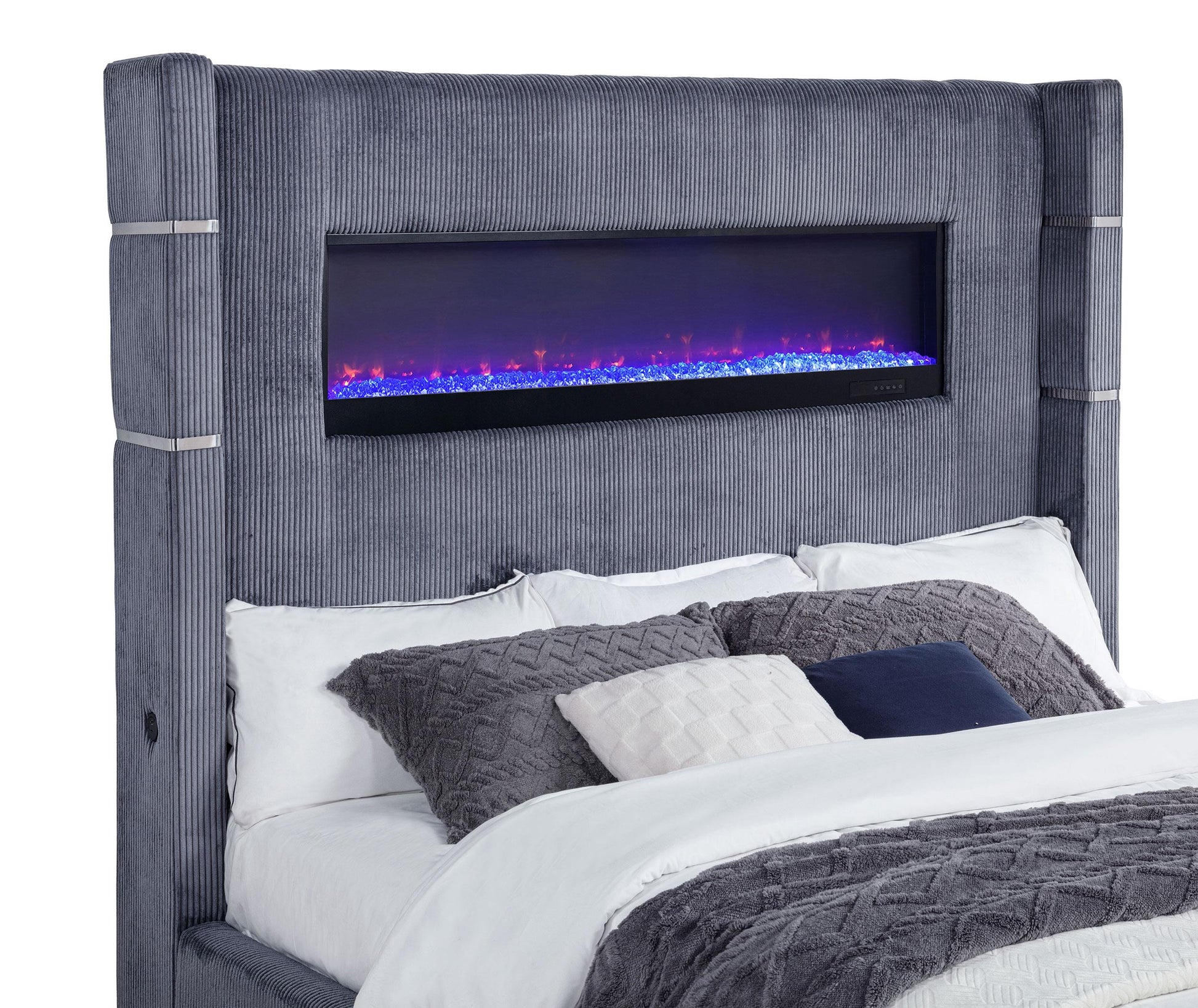 Tisdall Upholstered Cal King Flame Visualizer Bed Grey