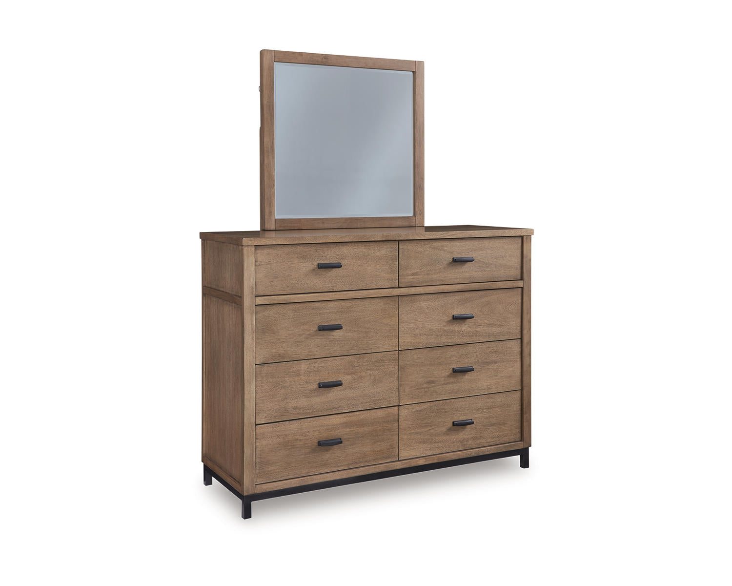 Meet the Tomtyn Dresser and Mirror—a compact storage and dressing solution designed for bedrooms and small spaces. The dresser pairs with a coordinating mirror to create a functional vanity area, while the warm light brown finish adds a welcoming touch to any décor.