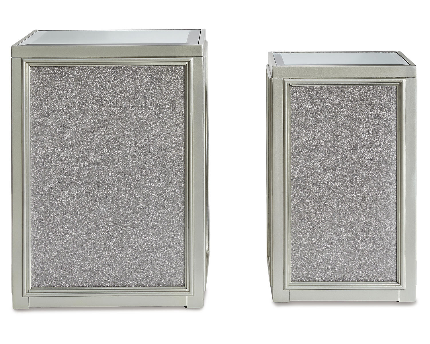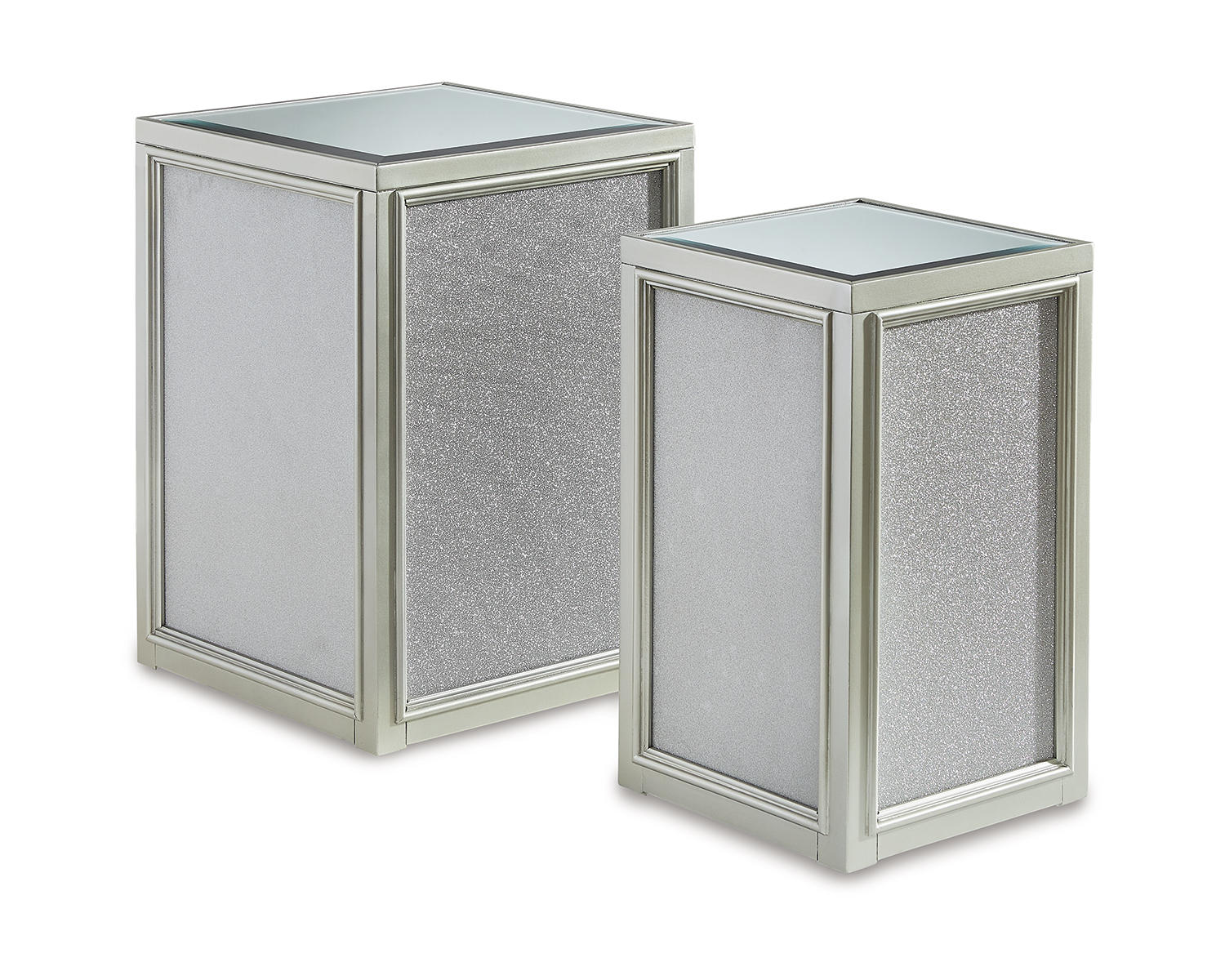 Two versatile end tables in a sleek silver finish, designed to add surface space where you need it most. This nesting pair is ideal for living rooms, bedrooms, or entryways, and seamlessly adapts to changing layouts and occasions.