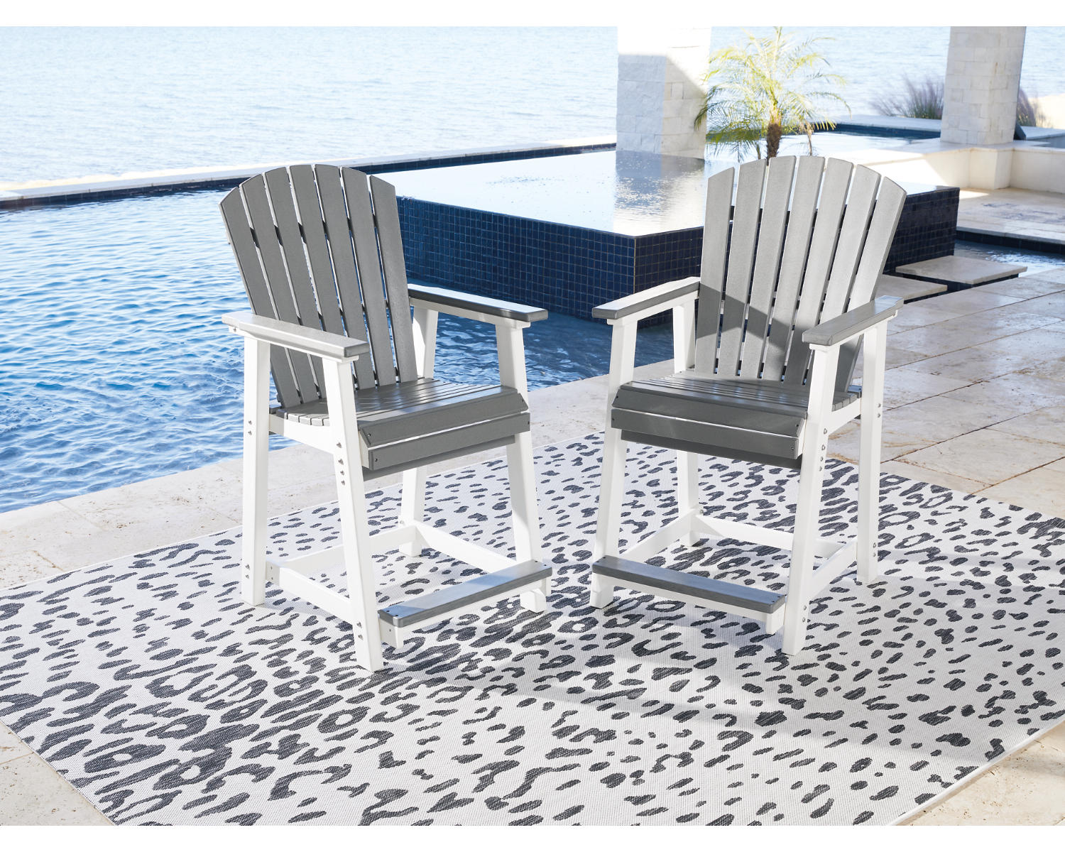 The Transville Outdoor Counter Height Bar Stool is a practical, stylish seating solution designed for outdoor living. This set of 2 stools in Gray/White adds versatile seating for patios, decks, or backyard bars. The counter-height design invites comfortable conversation at elevated surfaces while maintaining a clean, contemporary look.