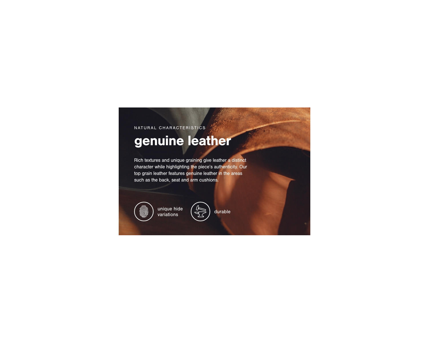 - Caramel upholstery provides a warm, versatile look that suits many rooms.