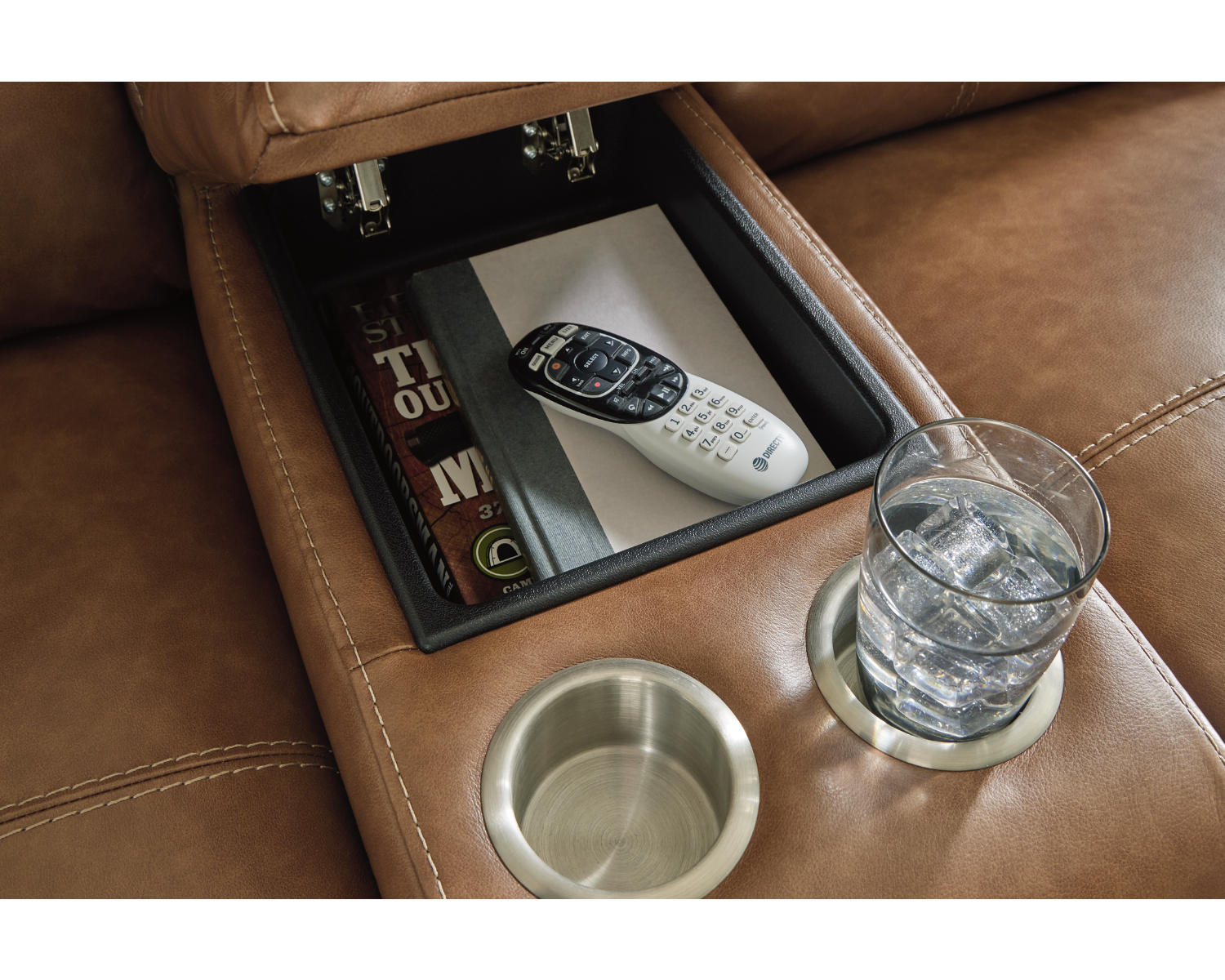 Introducing the Trasimeno Power Reclining Loveseat with Console — a comfortable, versatile seating solution designed for relaxed evenings and family time. This caramel-toned loveseat blends modern function with approachable style, making it a fit for living rooms, media spaces, and cozy apartments.