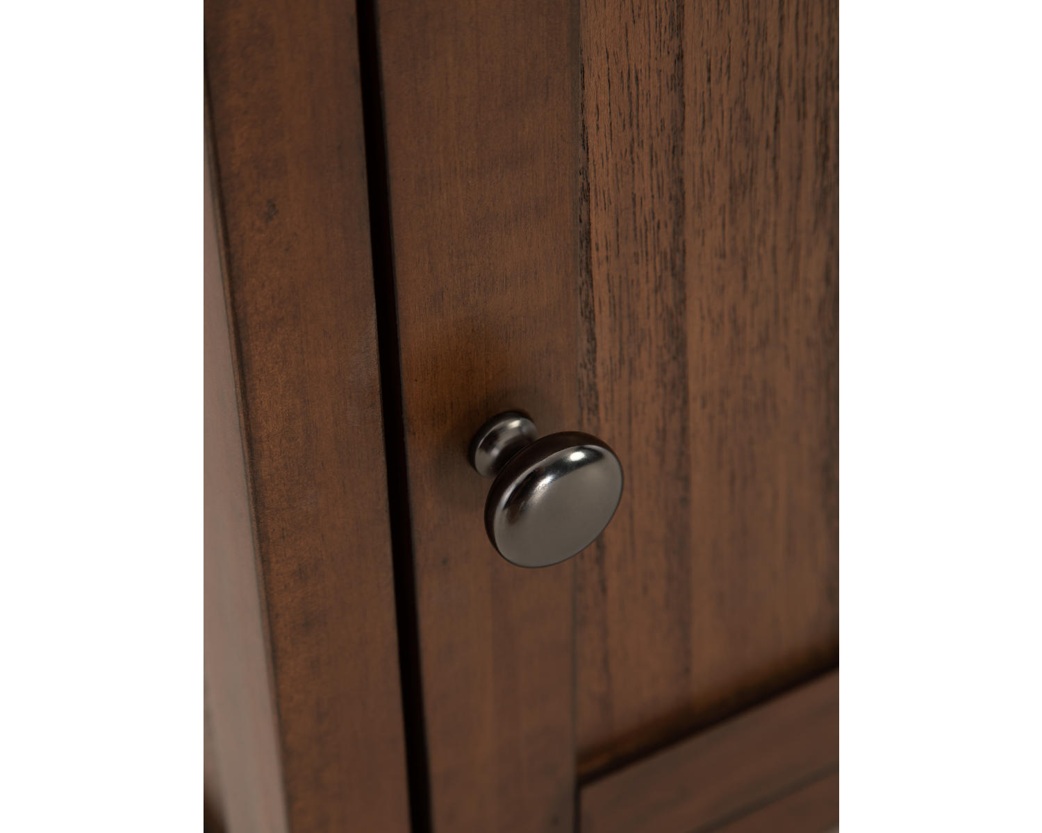 - Warm brown finish for a timeless look that blends with a variety of decors