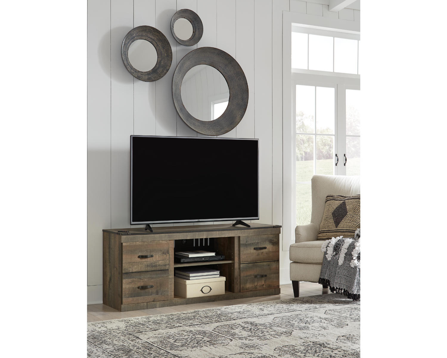 Trinell 60" TV Stand — a stylish LG TV stand with an optional fireplace feature. Designed for living rooms and home theaters, it provides sturdy support for a 60-inch screen while delivering a warm brown finish and clean, contemporary lines.