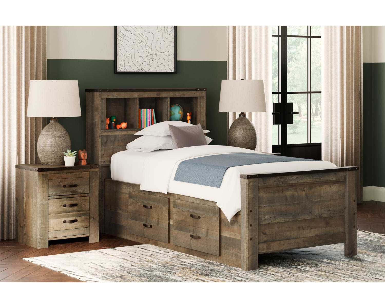 Trinell Twin Bookcase Bed with 2 Storage Drawers