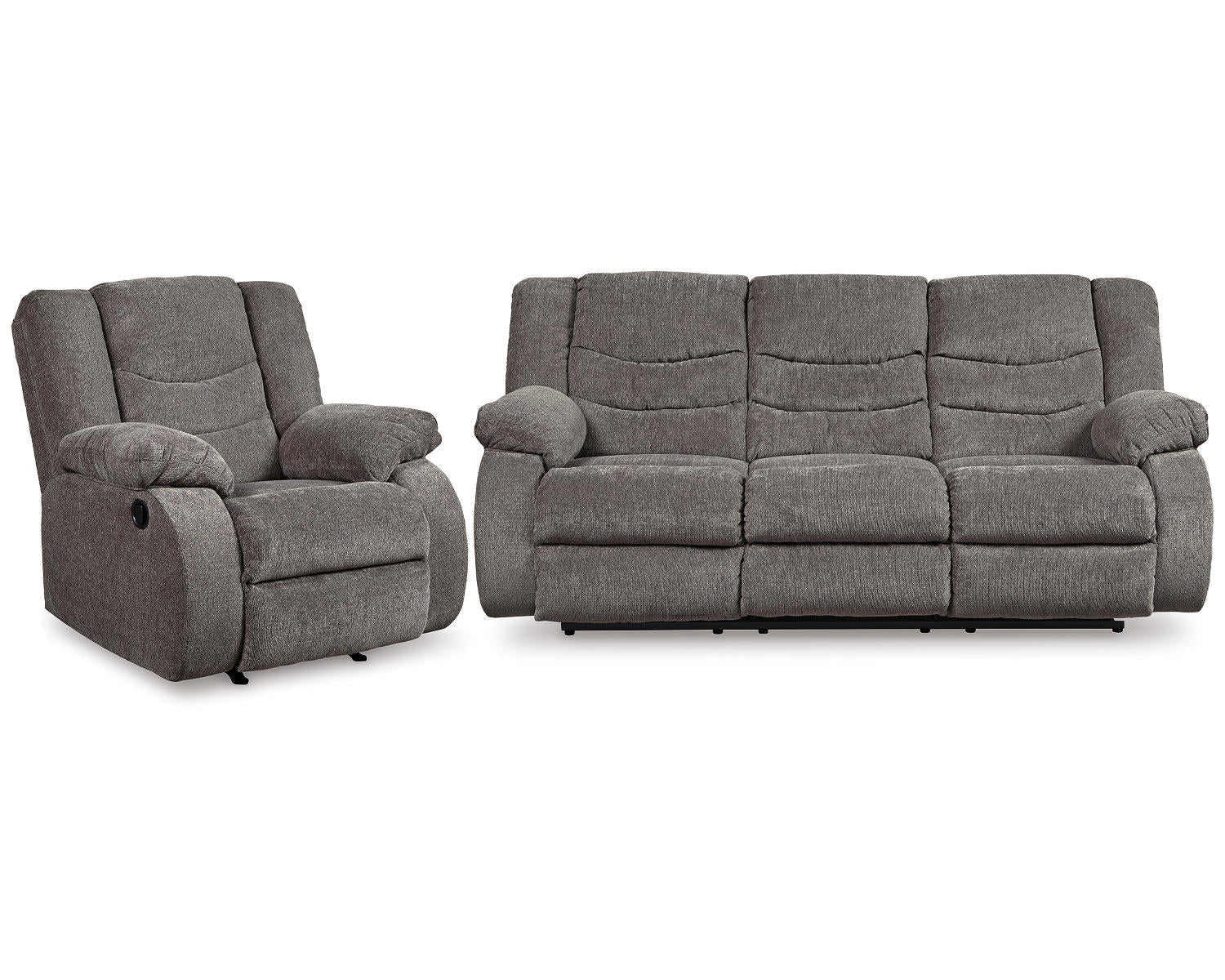 Meet Tulen—the versatile reclining sofa and matching recliner designed for comfort, convenience, and contemporary style. This gray set is ideal for homes that value effortless relaxation, whether you’re streaming a movie, hosting guests, or enjoying a quiet evening. Its streamlined silhouette fits seamlessly into modern living spaces while delivering reliable comfort.