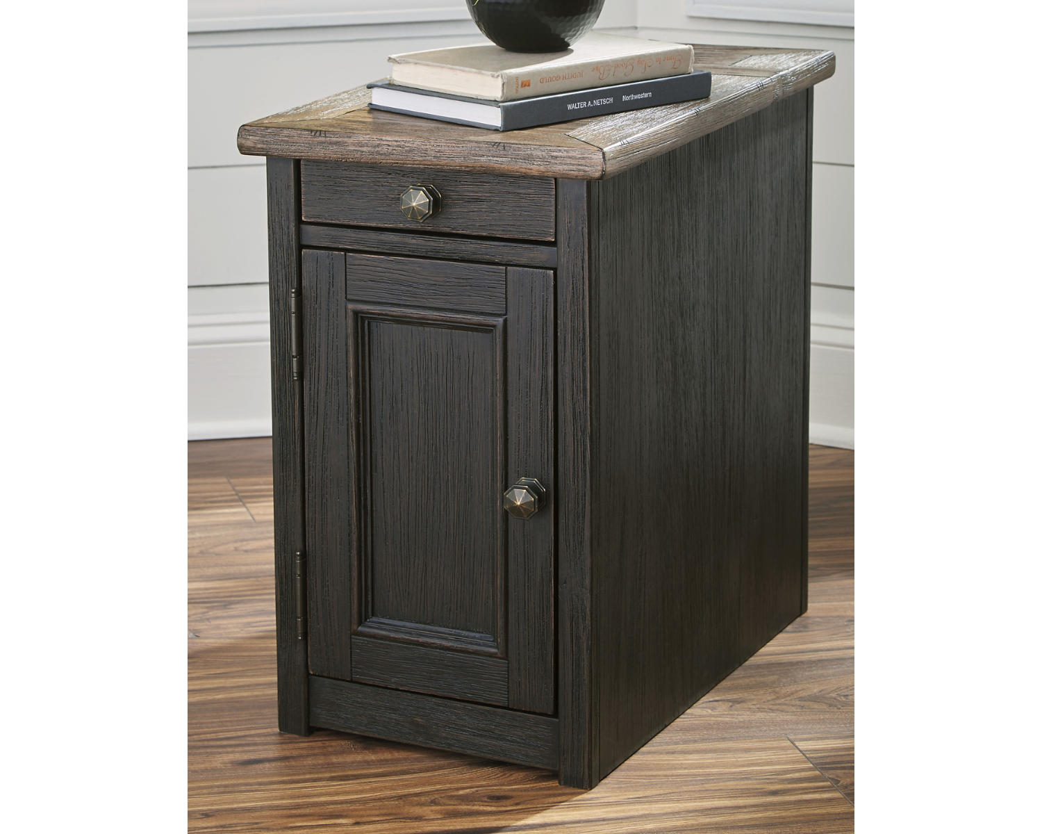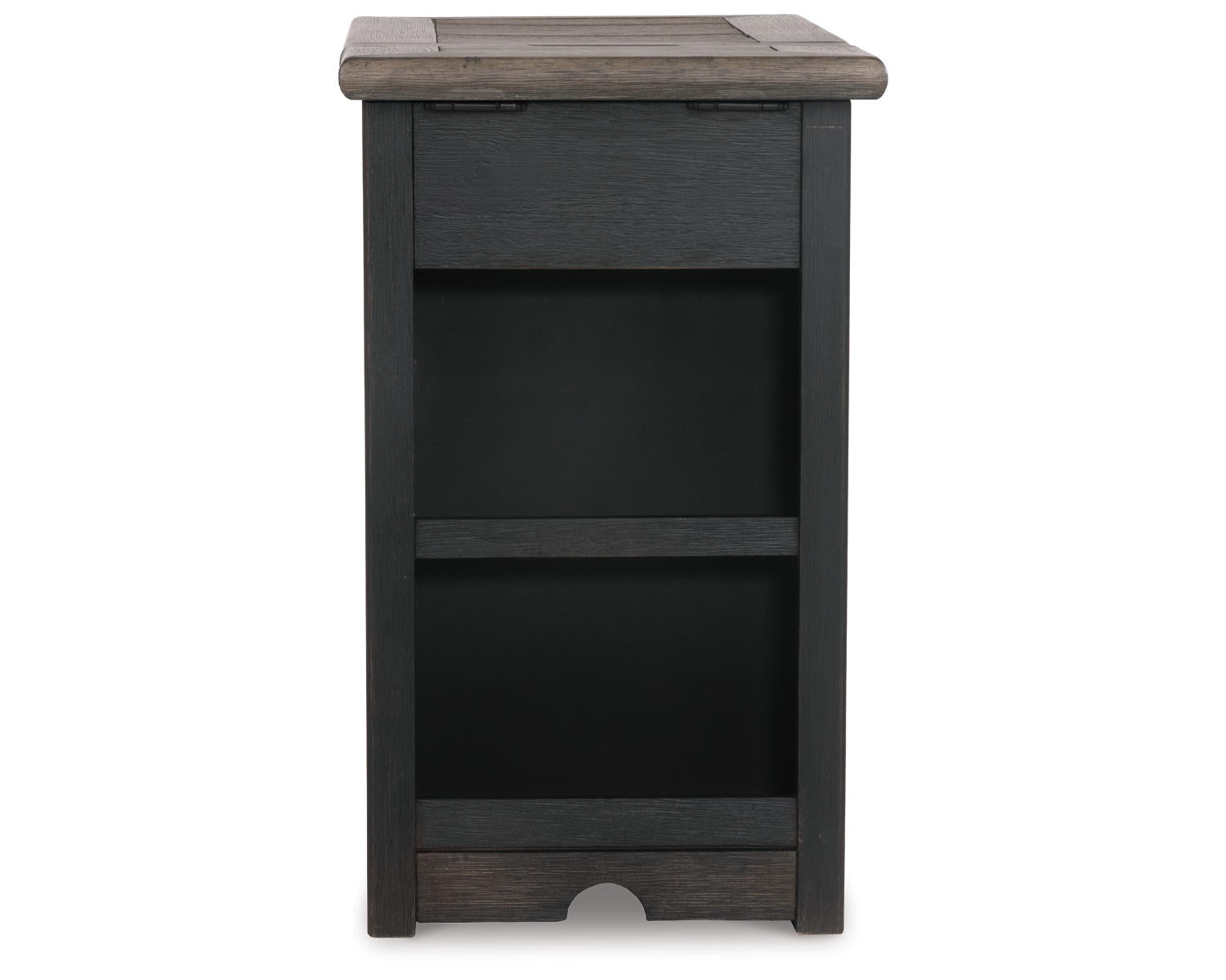 Elevate your living space with the Tyler Creek Chairside End Table, a compact, versatile piece designed to live beside your chair or sofa. It combines convenient charging with a clean, modern look in a Grayish Brown/Black finish. Perfect for staying organized while keeping devices within reach.