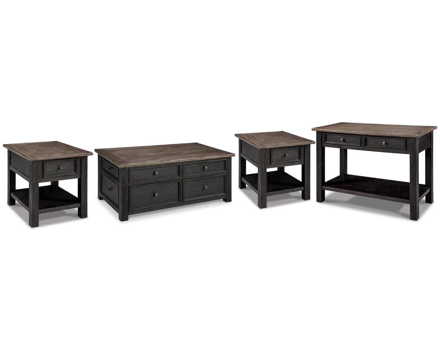 Meet the Tyler Creek collection — a coordinated furniture set that brings together a coffee table, two end tables, and a console in a versatile grayish brown/black finish. Designed for modern living rooms and entryways, this trio (plus console) offers clean lines, practical surfaces, and a cohesive look you can mix with a range of decors.