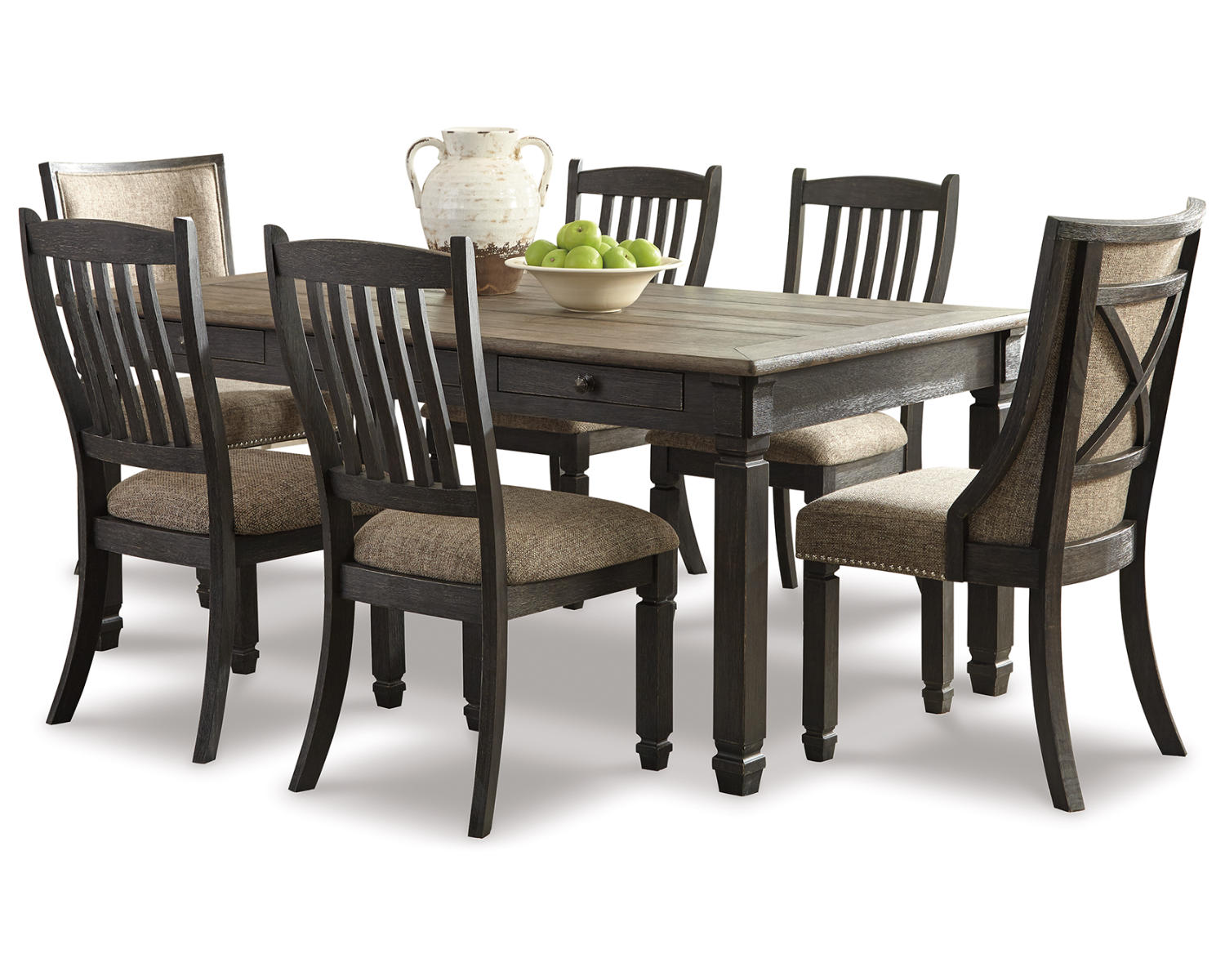 Meet the Tyler Creek Dining Table with 6 Chairs—a complete dining set designed for everyday meals, casual entertaining, and a modern aesthetic. The two-tone Black/Gray finish blends versatility with contemporary appeal, making it a practical addition to a range of dining spaces. Built for everyday use, this set offers a balanced combination of style and functionality.