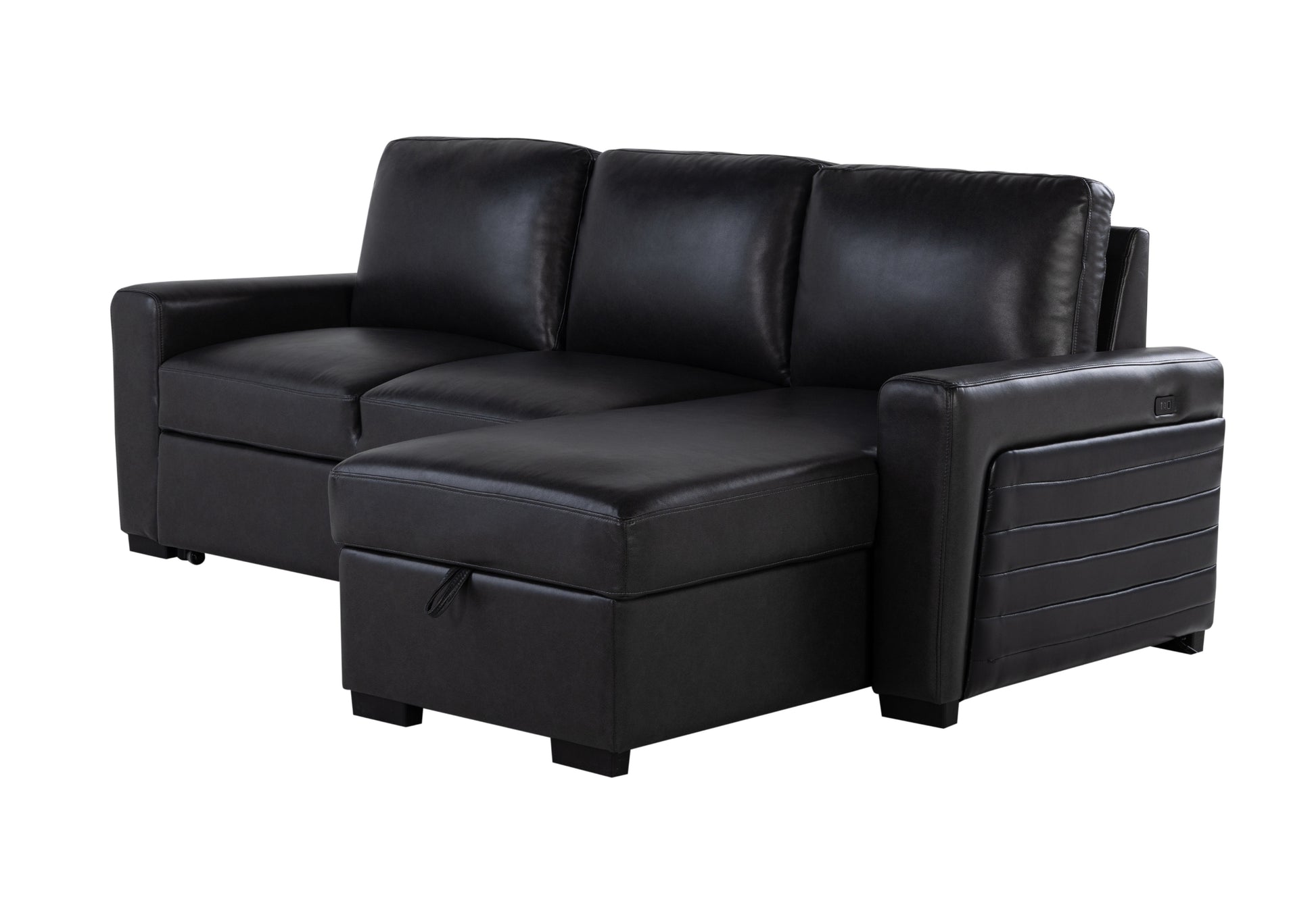 U1830 Blanche Charcoal/Black Reversible Chaise with USB