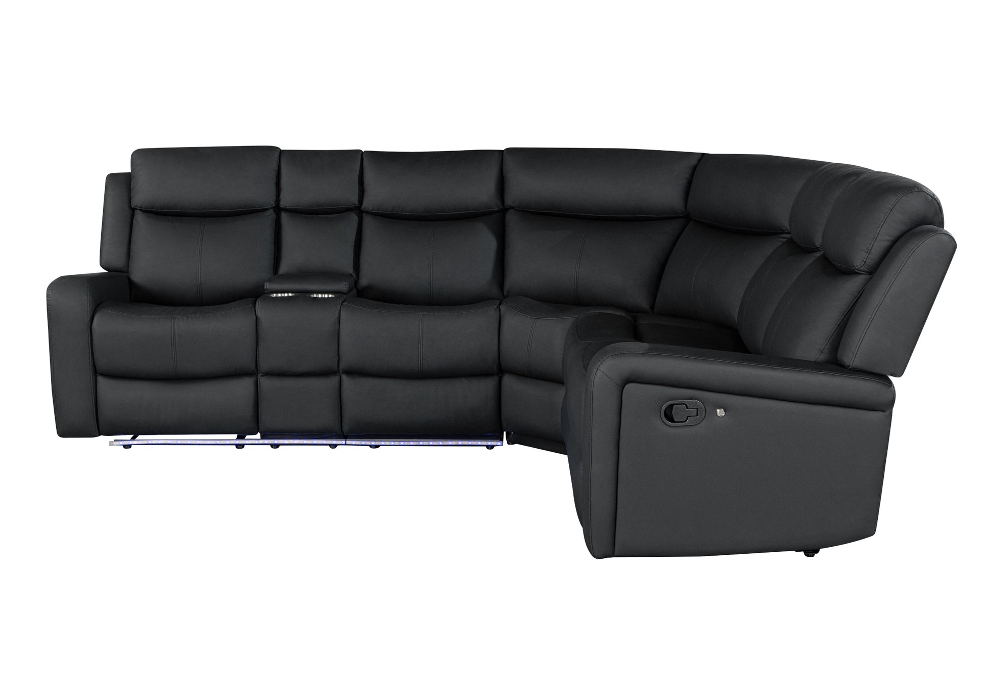 U6024 BLACK PU 72A SECTIONAL WITH LED AND 2 RECLINERS