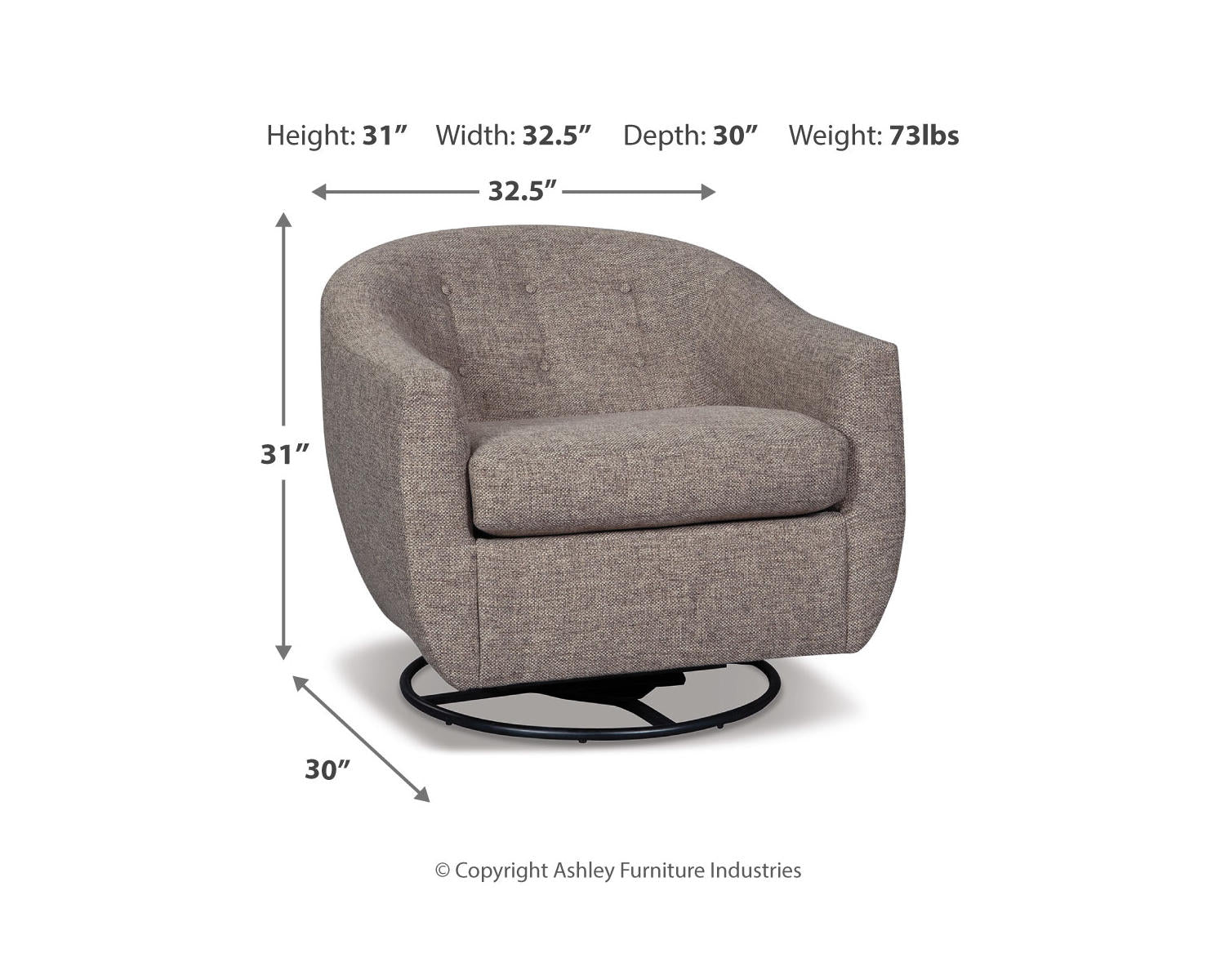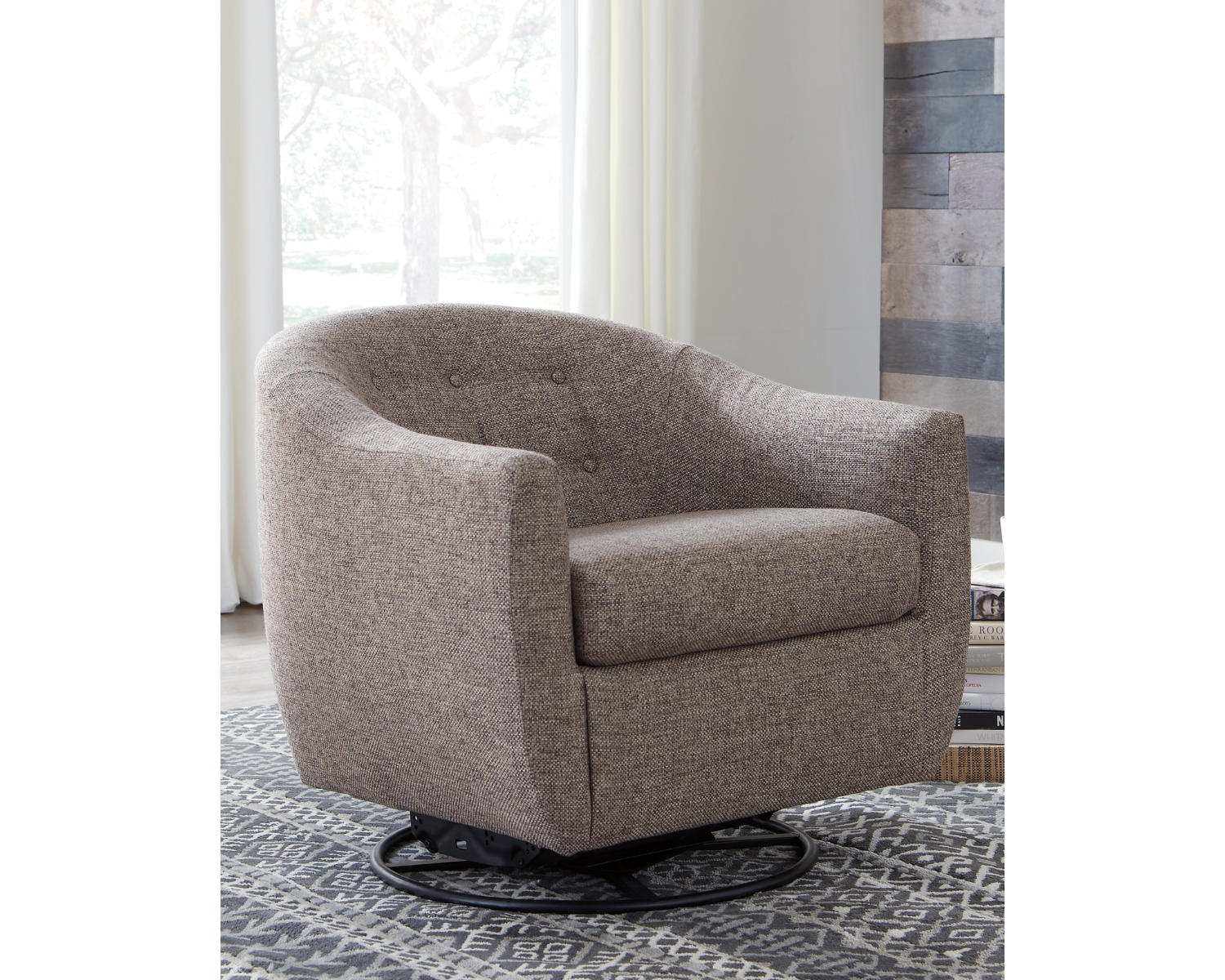 The Upshur Accent Chair is a versatile swivel-glider designed to elevate living rooms, bedrooms, or home offices. Its taupe upholstery and smooth motion offer a comfortable seating option with contemporary style. Perfect for adding a refined touch to everyday spaces, it combines function with calm, neutral aesthetics.