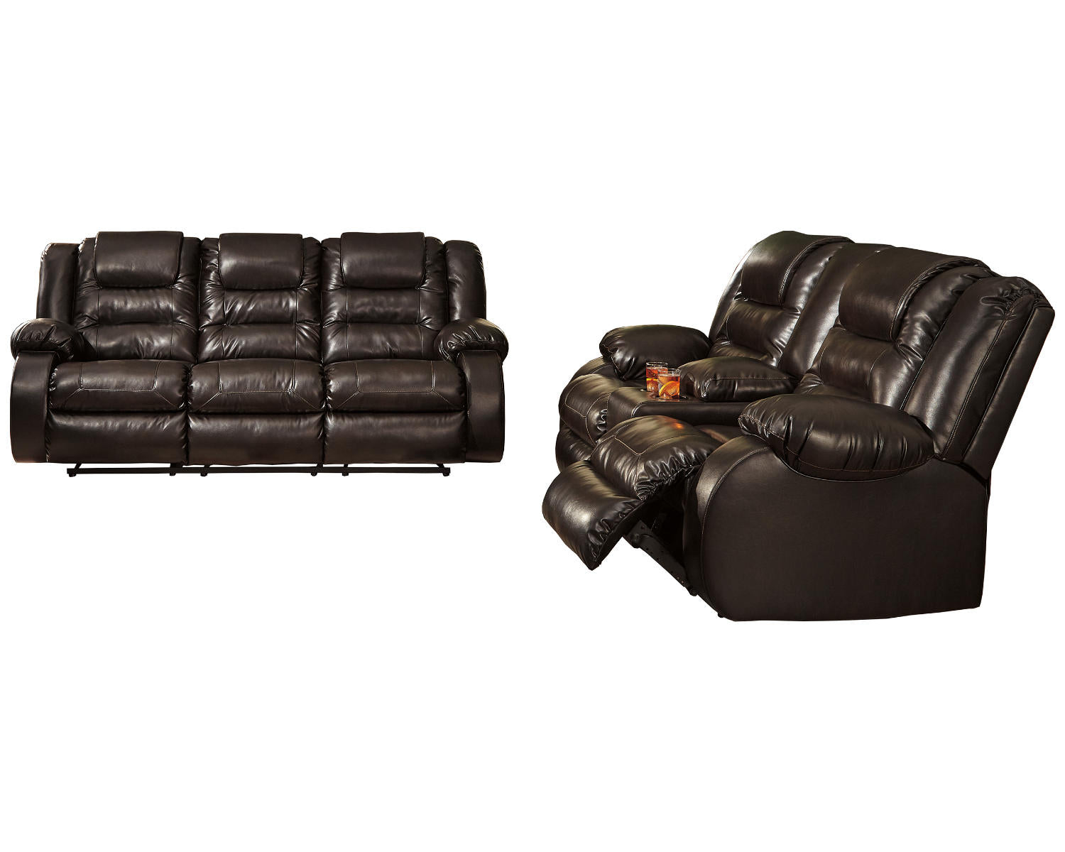 Meet the Vacherie reclining sofa and loveseat in chocolate—a versatile pair built for everyday lounging. Designed for living rooms, family rooms, or entertainment spaces, this set blends timeless style with comfortable reclining action. Enjoy a refined, inviting look that welcomes you to unwind after a long day.