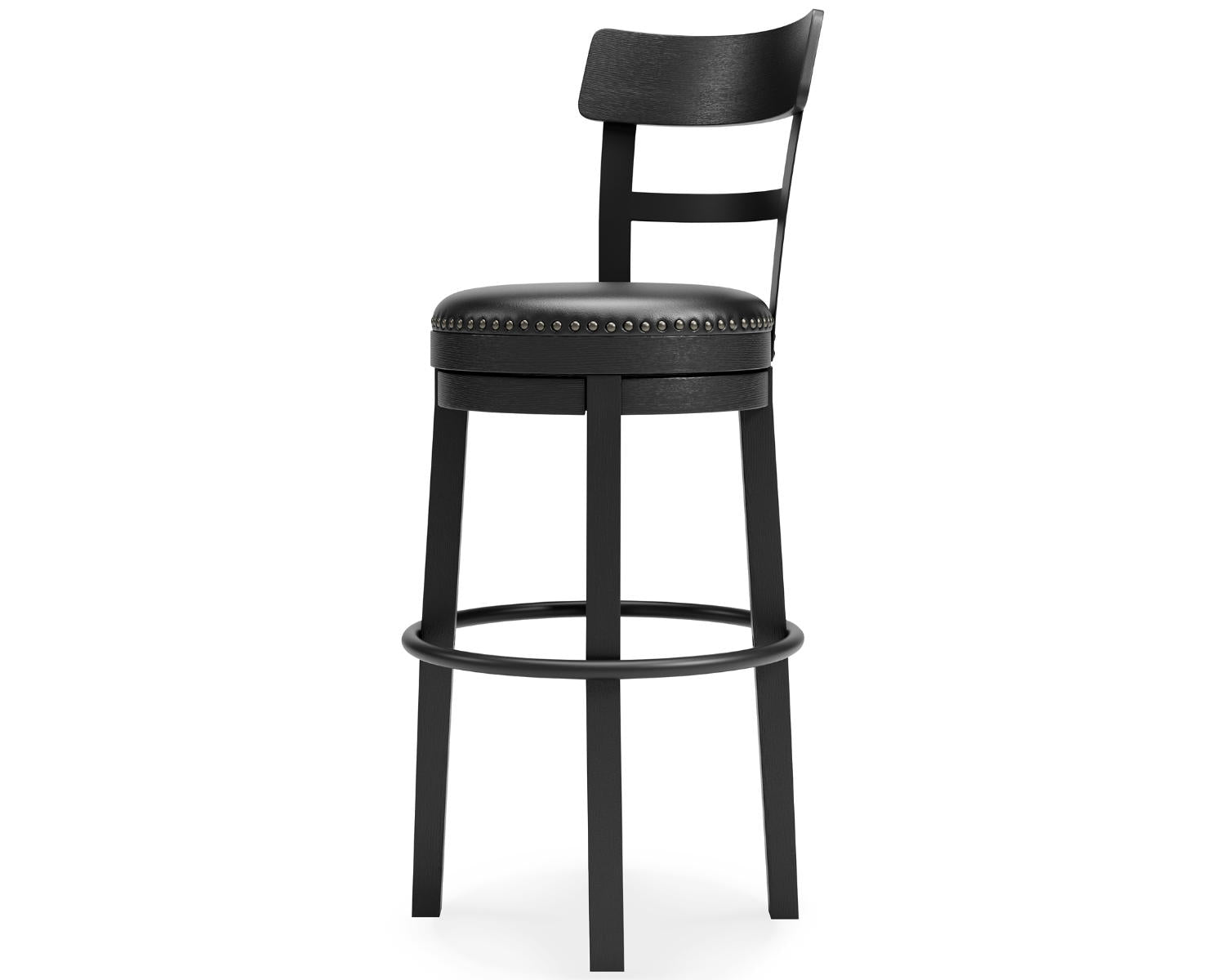 Meet the Valebeck Bar Height Bar Stool — a tall, swiveling seat designed for bar-height counters. Perfect for kitchens, home bars, or small cafés, it combines clean lines with practical comfort and a versatile black finish.