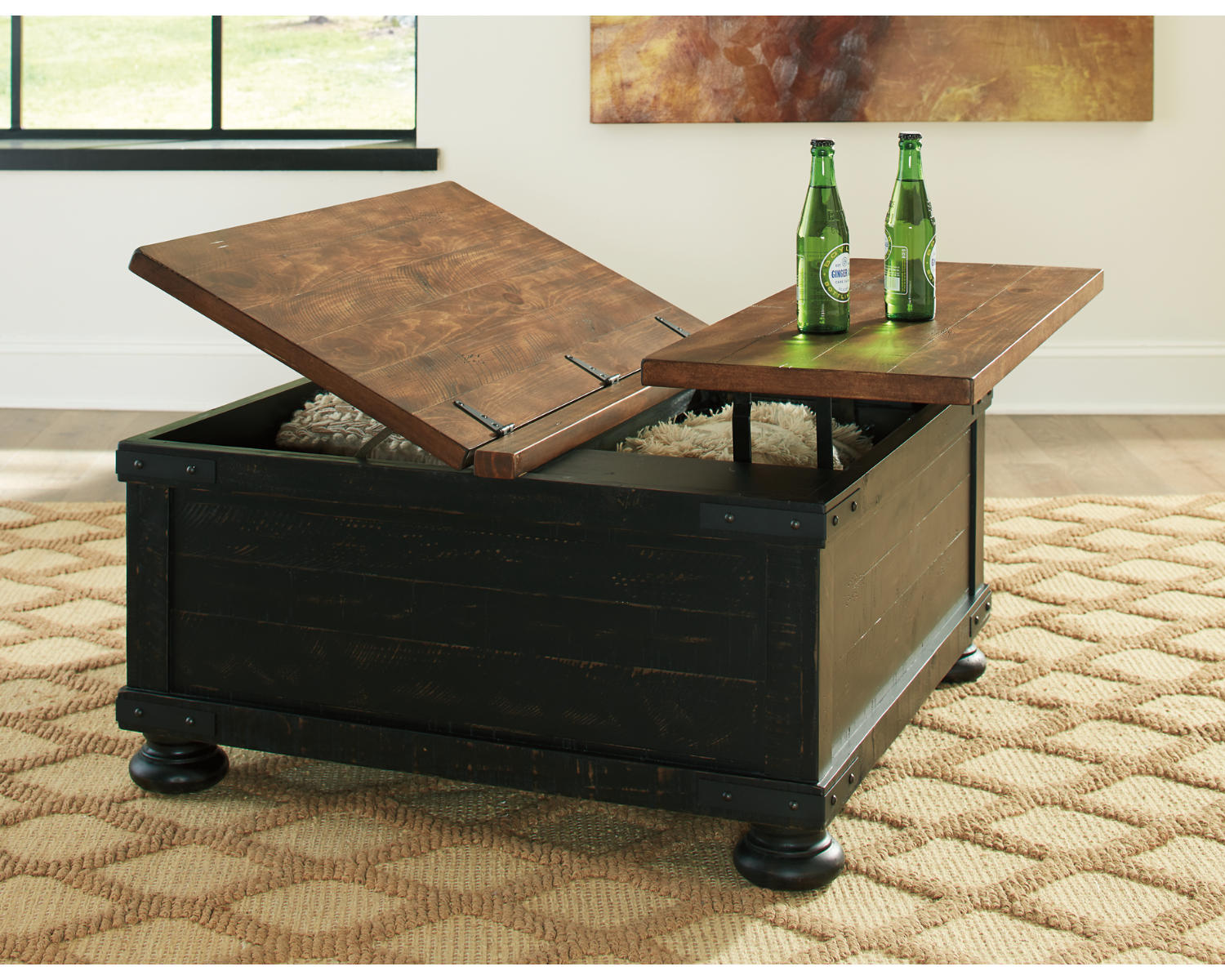 Meet the Valebeck Coffee Table with Lift Top, designed for busy living spaces that demand space-saving functionality. This lift-top cocktail table combines a sleek Black/Brown finish with practical versatility, making it ideal for living rooms that double as work or dining areas. Built to handle daily use with clean lines and modern appeal, it fits a range of decor styles.