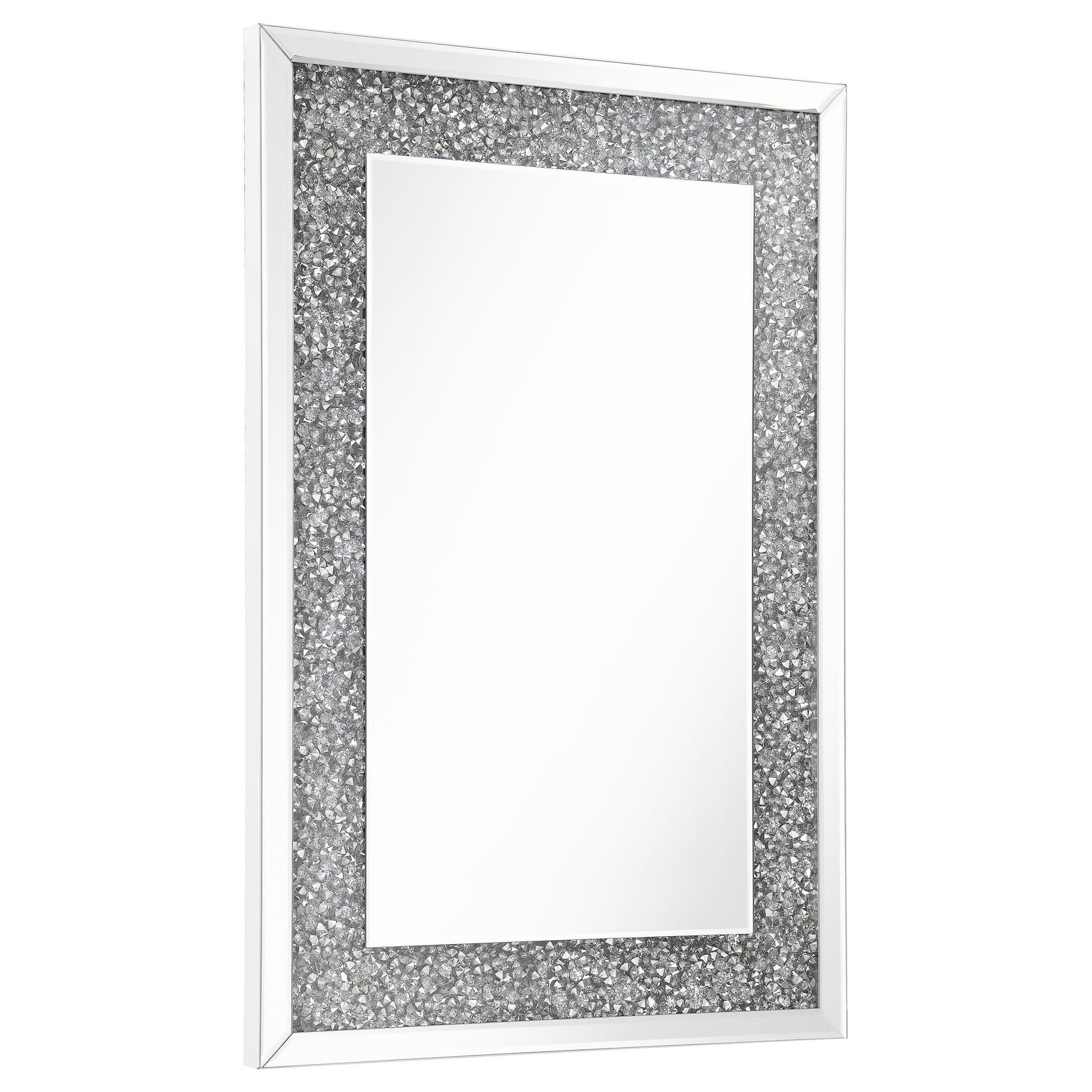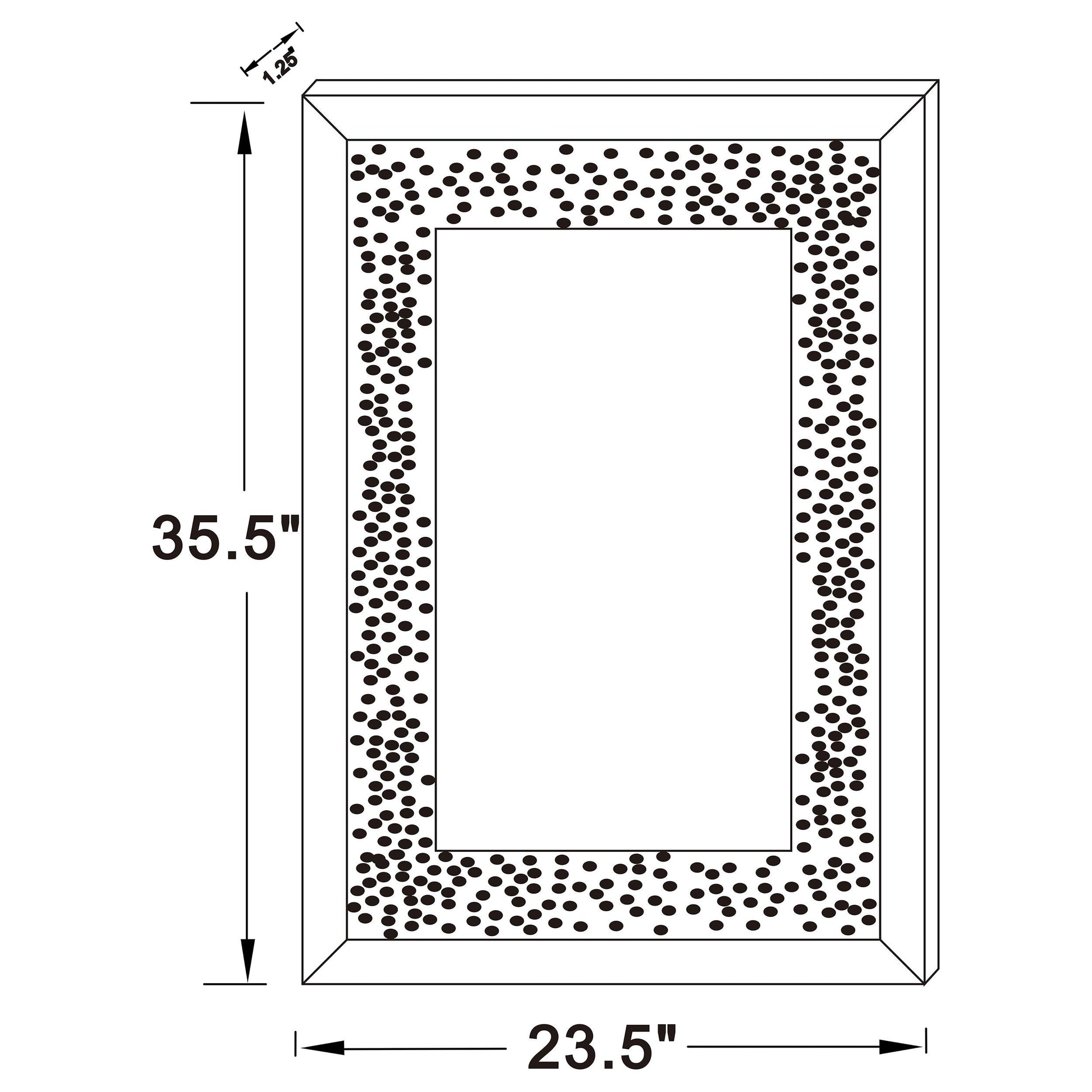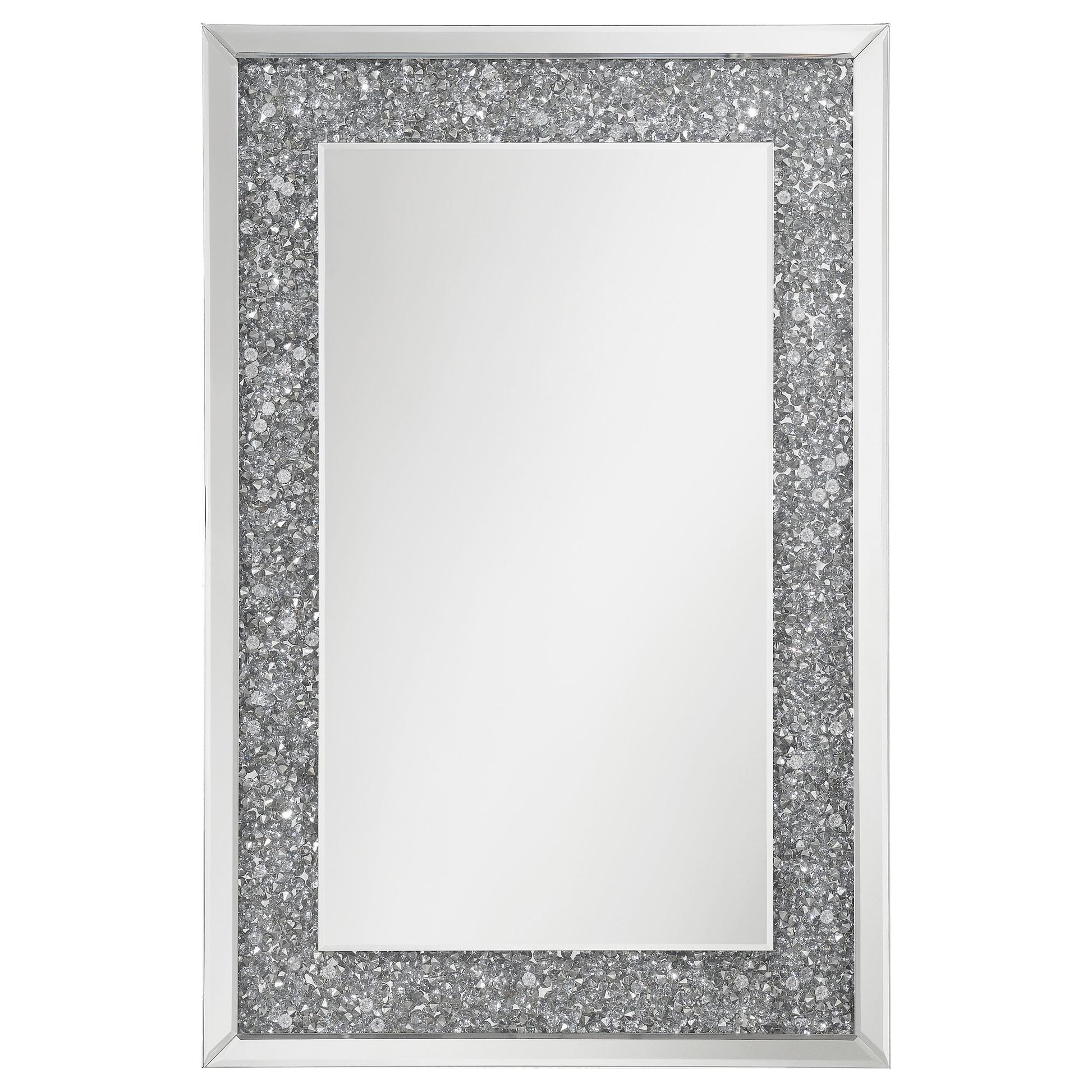Valerie is a 24 x 36 inch acrylic crystal wall mirror finished in silver. This modern piece is designed for bedrooms, bathrooms, entryways, and living spaces, delivering bright reflections with a contemporary vibe.