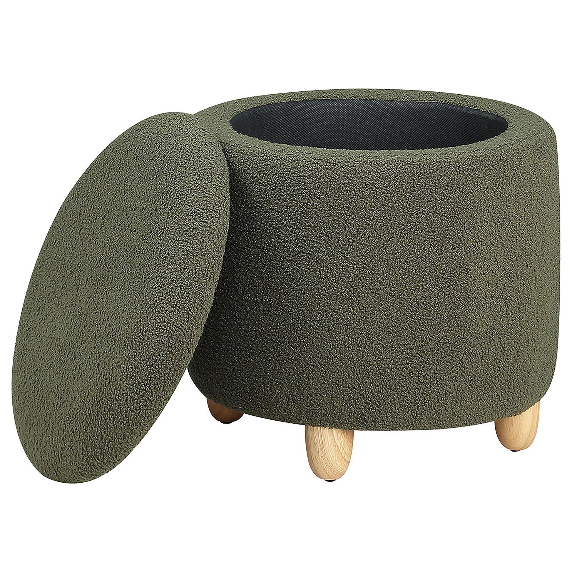 Valia Faux Sheepskin Upholstered Round Storage Ottoman Green