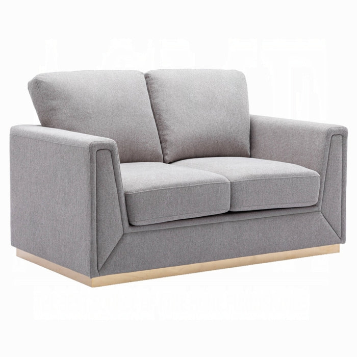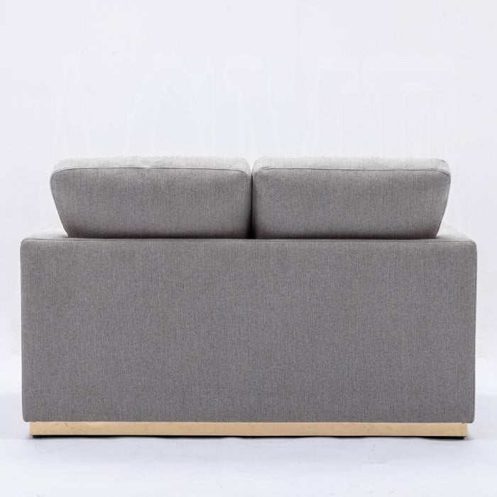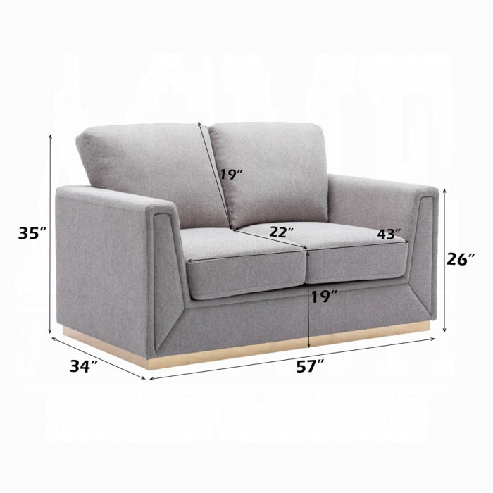 Chic and inviting, the Valin contemporary loveseat is designed for stylish spaces. It suits apartments, living rooms, or lounges and blends comfort with a modern silhouette. The gray linen upholstery acts as a versatile canvas for colorful throw pillows and blankets, while the soft touch invites relaxed seating.