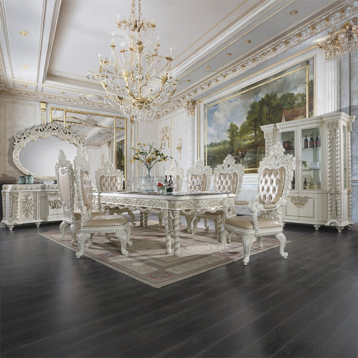 The Vanaheim Mirror delivers luxurious style and sophisticated charm to elevate any bedroom or living space. Part of the Vanaheim Bedroom Collection, it features a radiant finish and an extravagant scroll floral design with gold trim accents, creating classic appeal and timeless silhouettes.