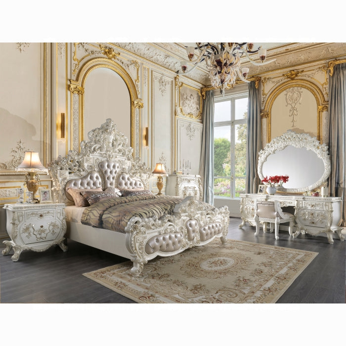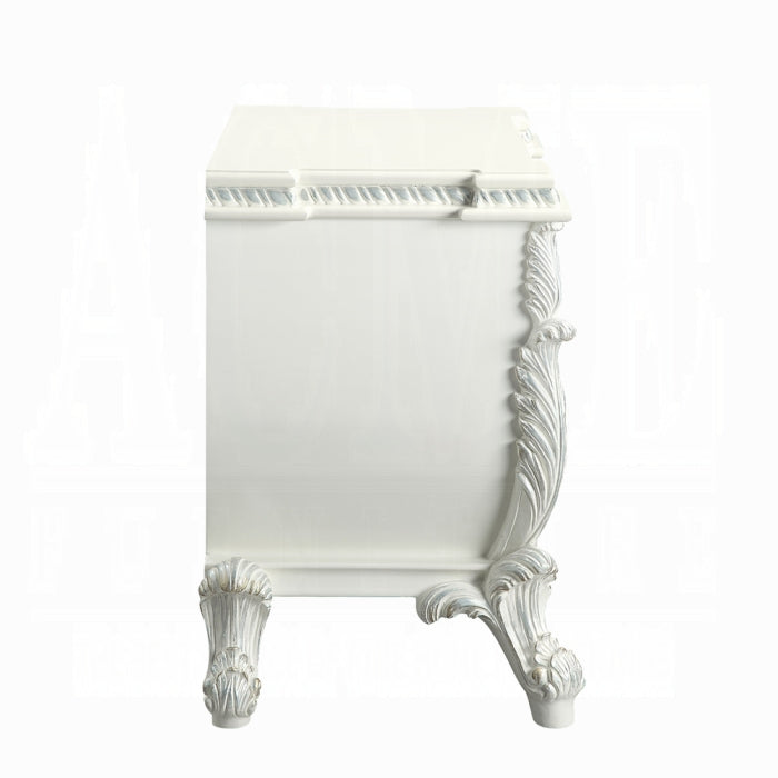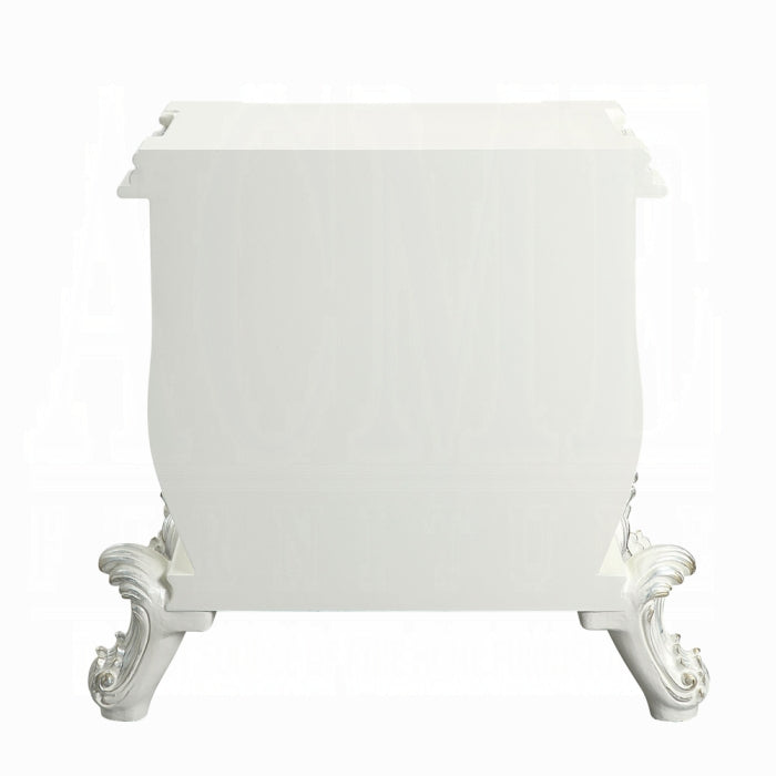Experience luxurious style and sophisticated charm with the Vanaheim Nightstand, a refined bedside companion designed for bedrooms that value timeless elegance. Part of the Vanaheim Bedroom Collection, this nightstand blends lustrous finishes with an extravagant scroll floral design accented by gold trim to create classic appeal. It's an ideal choice for anyone seeking an enduring centerpiece beside the bed.