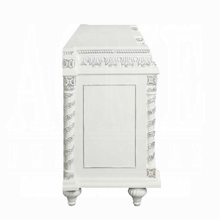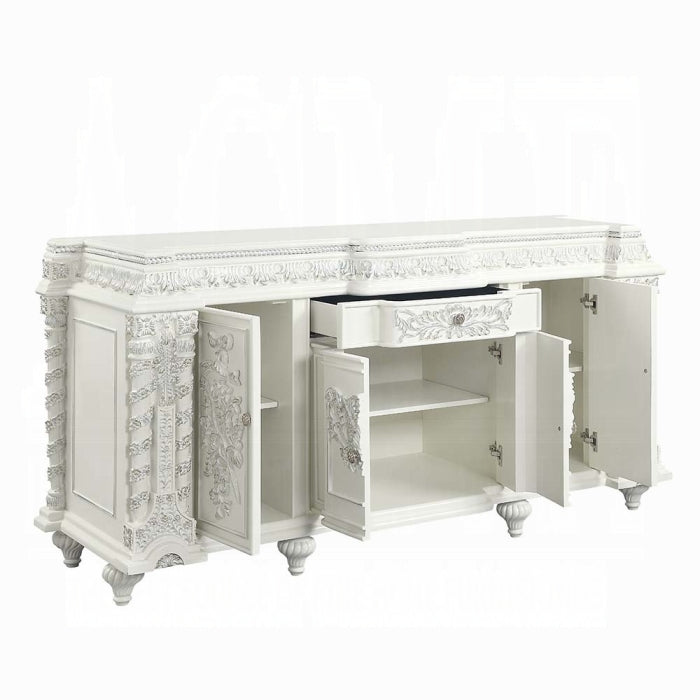 Discover refined luxury with the Vanaheim Server, a standout piece from the Vanaheim Dining Room Collection. Designed for those who value timeless elegance, it blends fabulous floral detailing with a sophisticated antique white finish. This server brings an alluring, elegant touch to any dining space while offering practical storage for everyday dining needs.