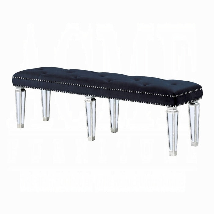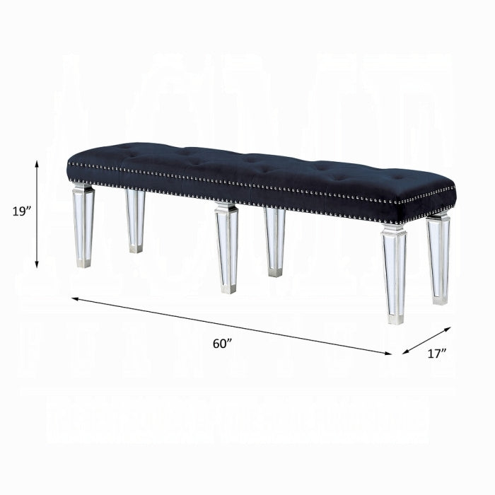 The Varian Bench makes a commanding statement in any room. This contemporary bench features an upholstered seat cushion in a dark fabric, paired with elegantly tapered legs. Its transitional design, accented with button tufting, makes it a versatile addition to any bedroom or living space.