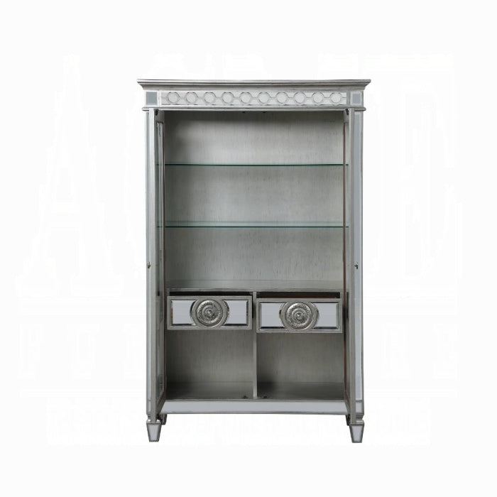 The Varian Curio is built with durable materials and substantial proportions to ensure stability and longevity. The heavy construction supports secure display of items, while the mirrored panels and antique platinum finish resist daily wear and maintain a high-end appearance. This cabinet offers competitive pricing for a luxury display piece, delivering great value without compromising on style or function.
