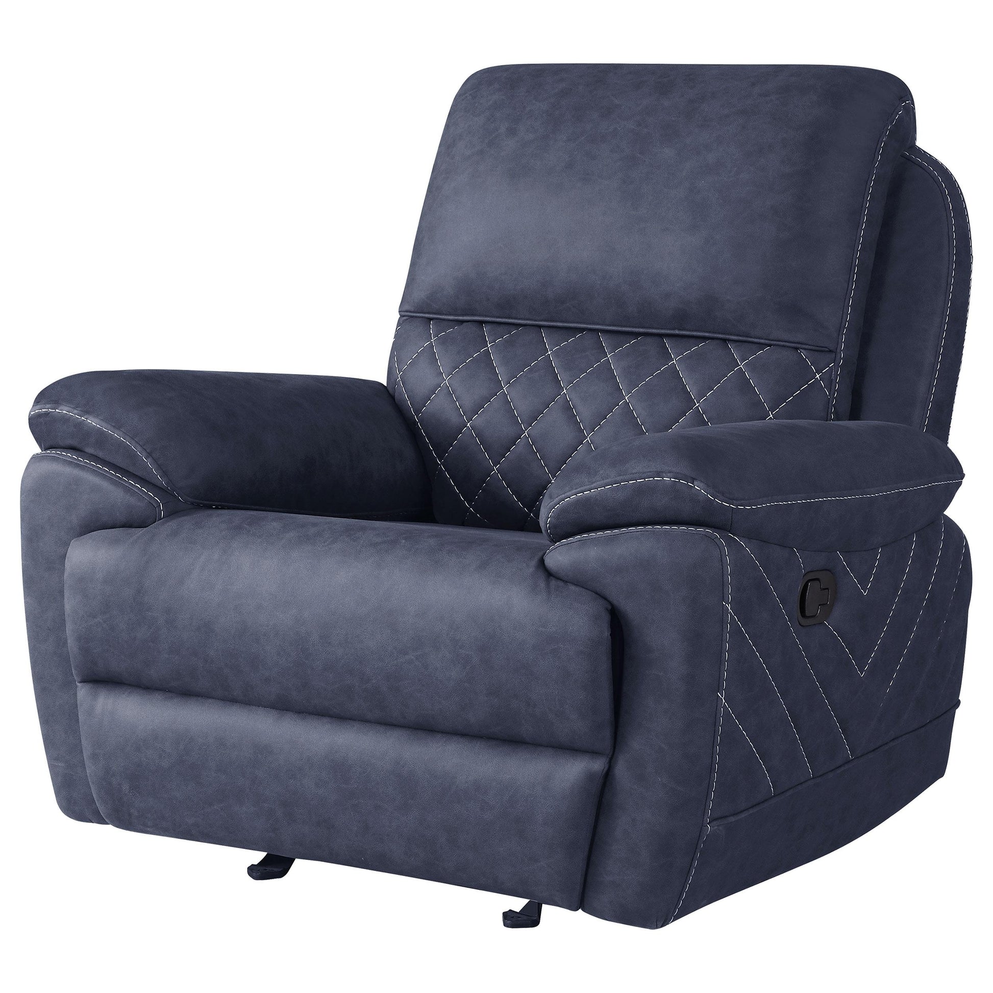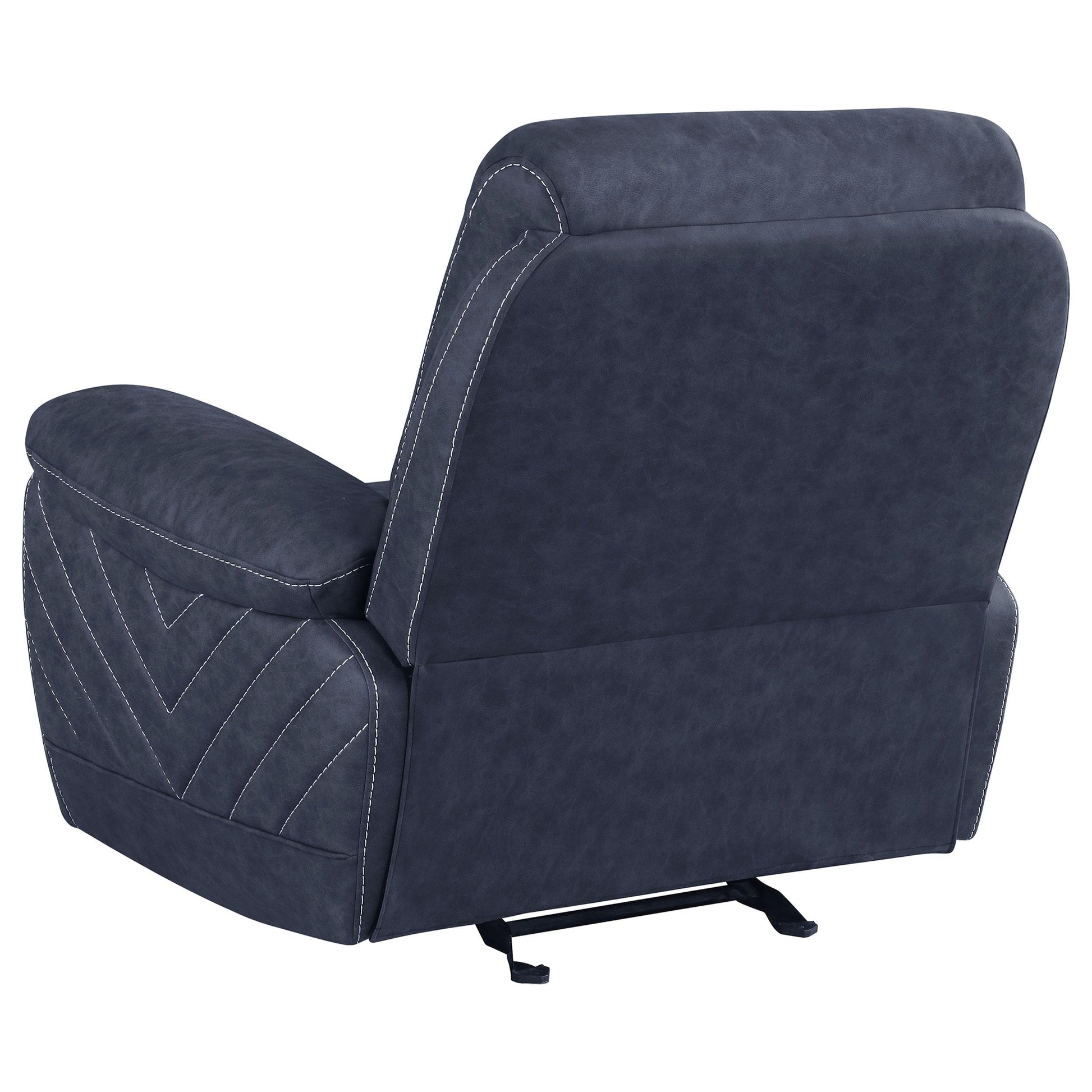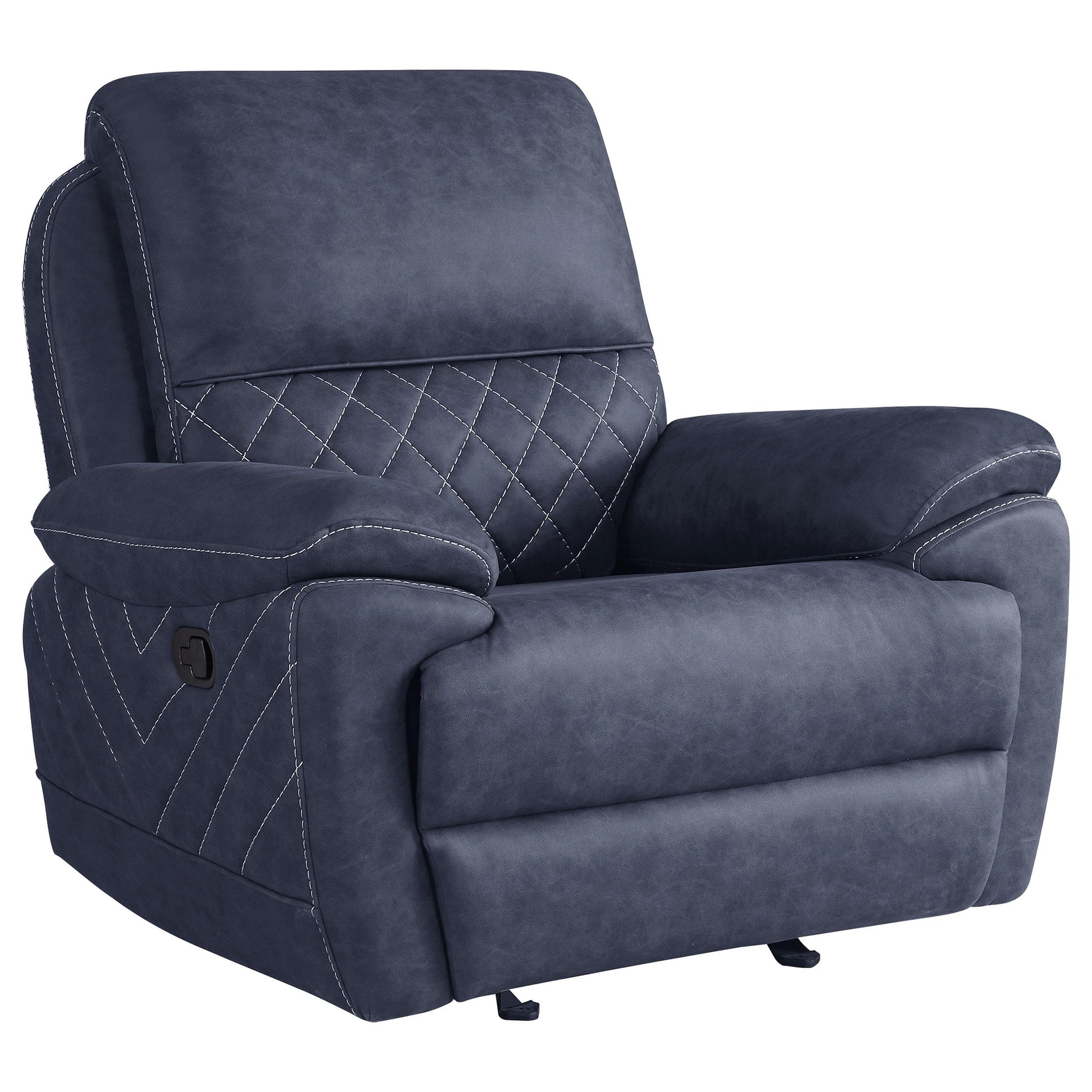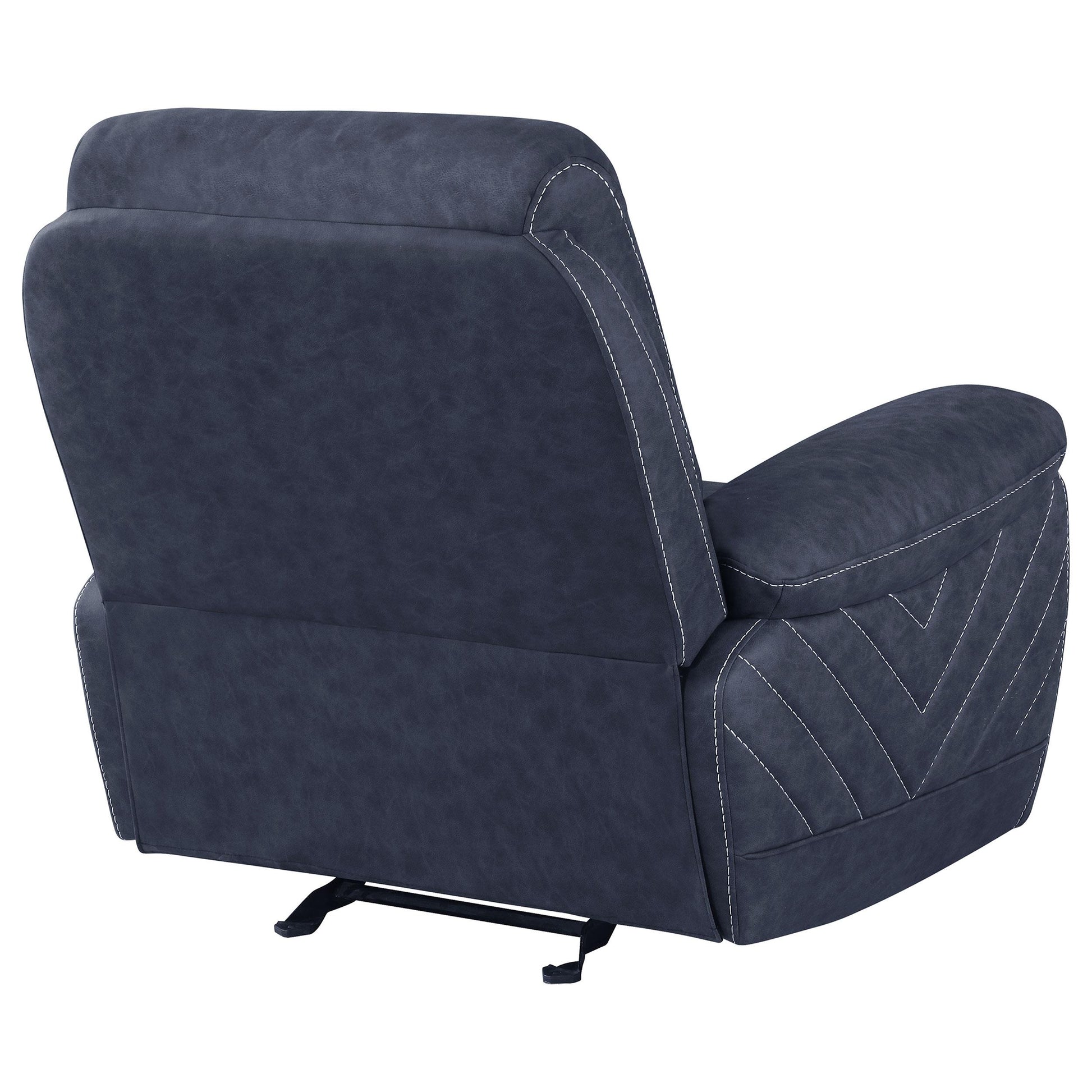 Experience relaxed seating with the Variel Glider Recliner in a vibrant blue. Ideal for daily lounging, reading, or family movie nights, this chair blends comfort with a clean silhouette that fits a range of living spaces.