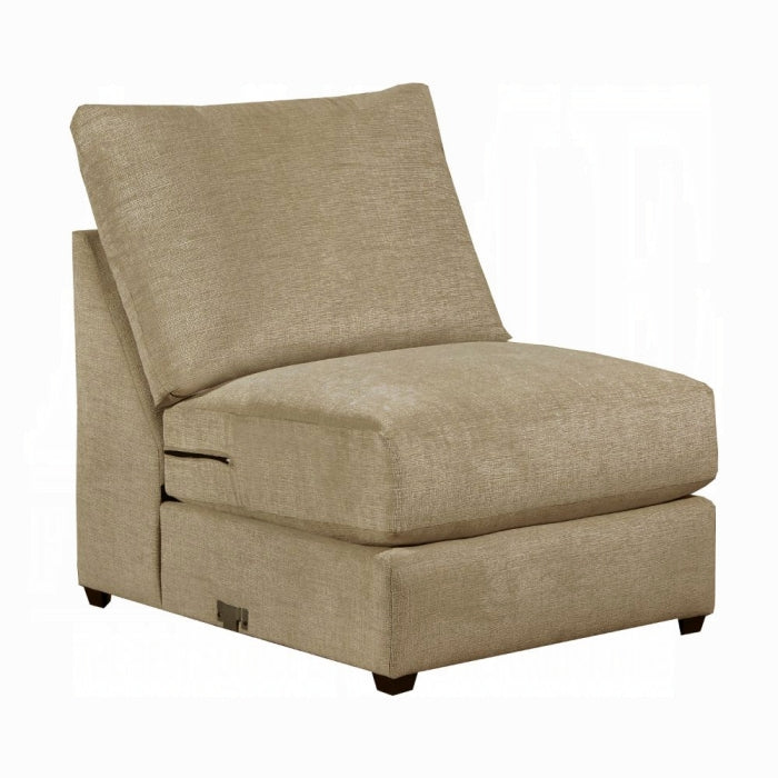Experience versatile modern seating with the Vassenia Armless Chair, a key piece from the Vassenia modular collection. Perfect for compact spaces or expansive layouts, this chair offers clean lines, comfortable padding, and a timeless latte chenille finish. Its armless design makes it easy to pair with other modular pieces and customize your configuration.