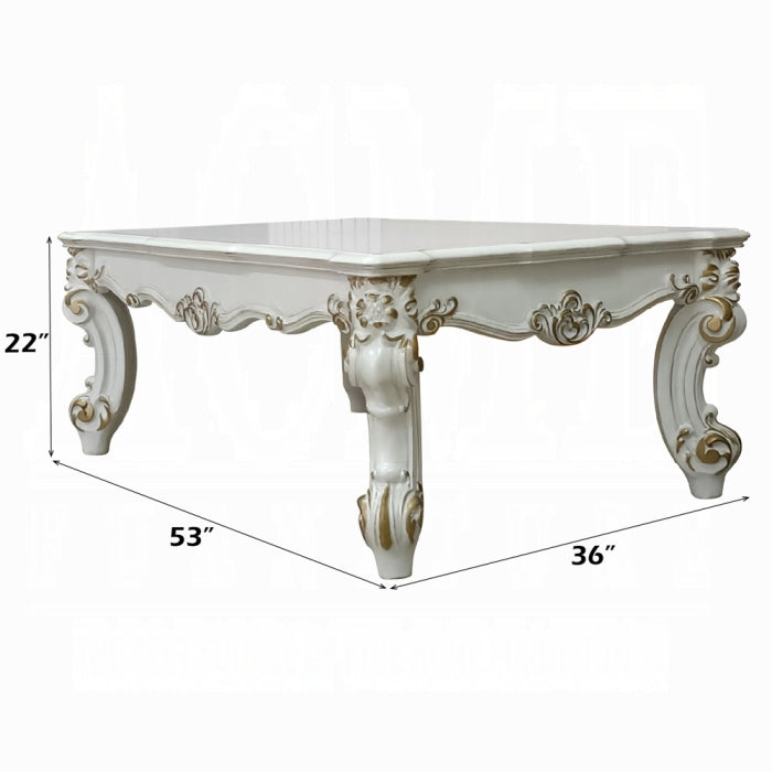Designed for durability, the Vendome II blends a sturdy frame with quality veneers and resin accents to withstand daily use while maintaining a smooth, flat surface. This table delivers solid value through premium materials and a timeless Antique Pearl finish, all at a competitive price point. Easy to pair with a variety of seating arrangements, it serves as a versatile centerpiece for any living space.