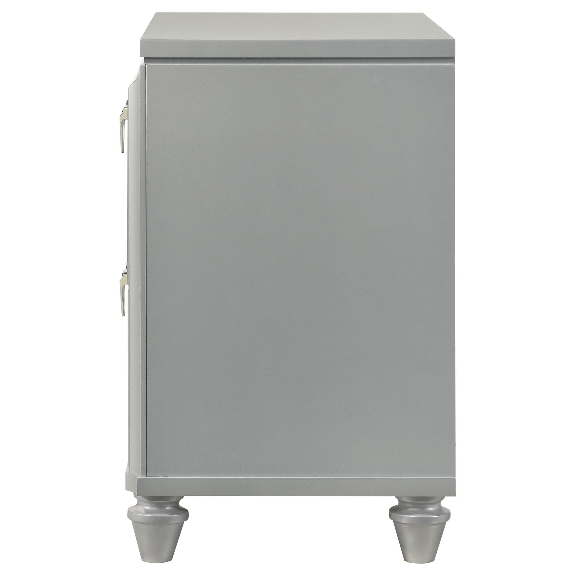The Veronica 2-drawer Nightstand in Light Silver offers clean lines and practical storage for bedrooms and guest spaces. Designed for modern living, it combines a subtle metallic finish with two easy-access drawers. This nightstand brings organization and a timeless look to your space.
