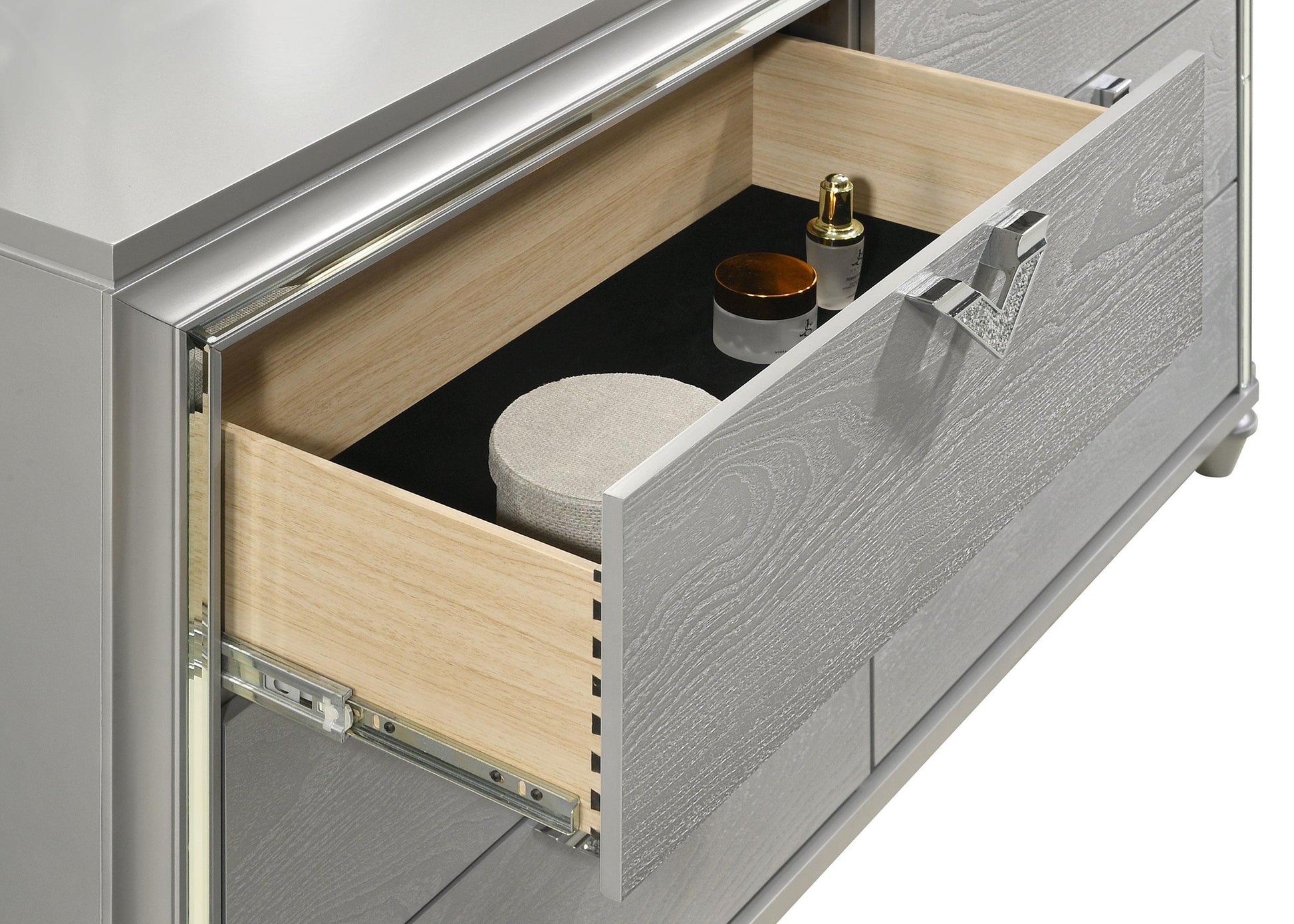Introducing Veronica, a 4-piece Eastern King bedroom set finished in Light Silver that brings a contemporary, airy vibe to modern bedrooms. Designed for spacious master suites or guest rooms, this collection delivers coordinated style with clean lines and a calm, cool finish. It offers an instant, cohesive look that’s easy to integrate with a variety of decors.