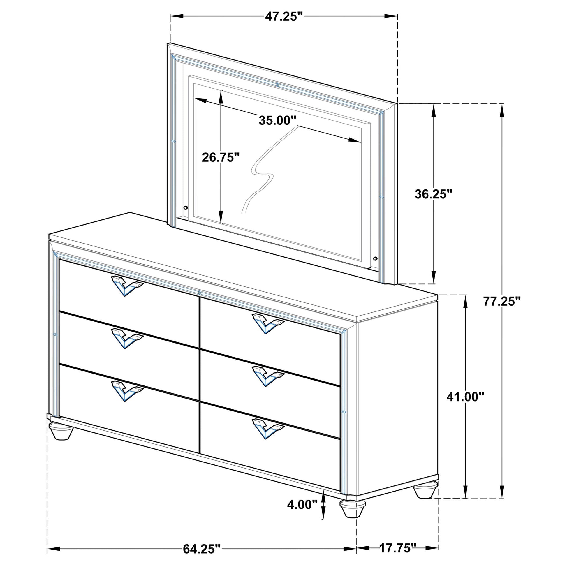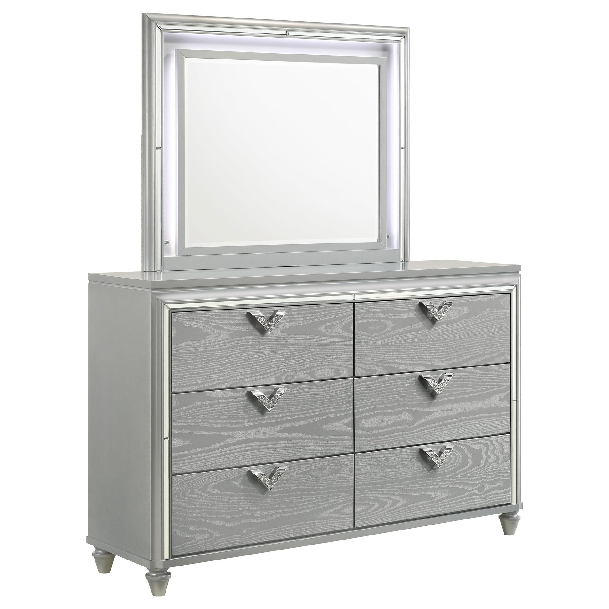 Veronica 6-drawer Dresser with Mirror - Light Silver