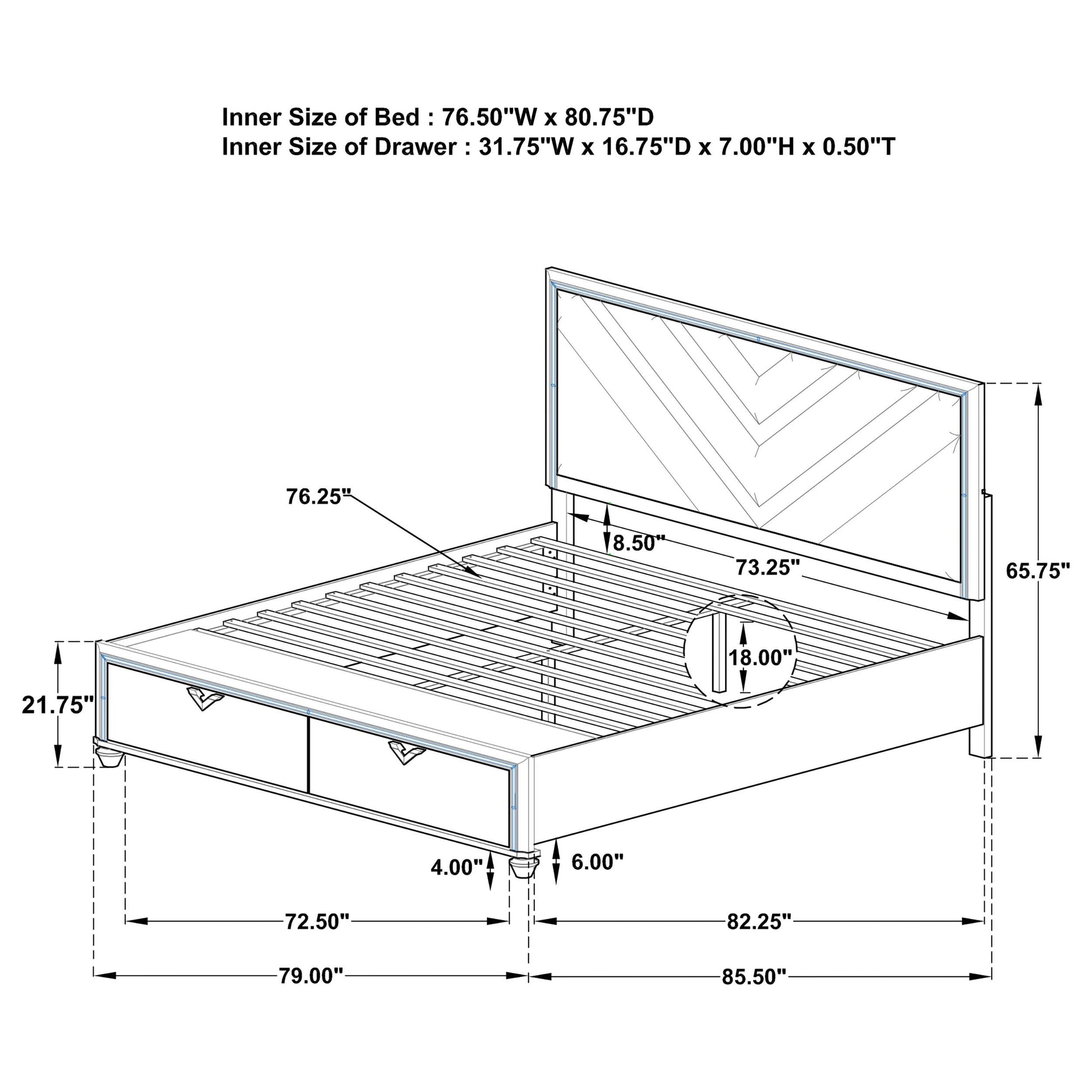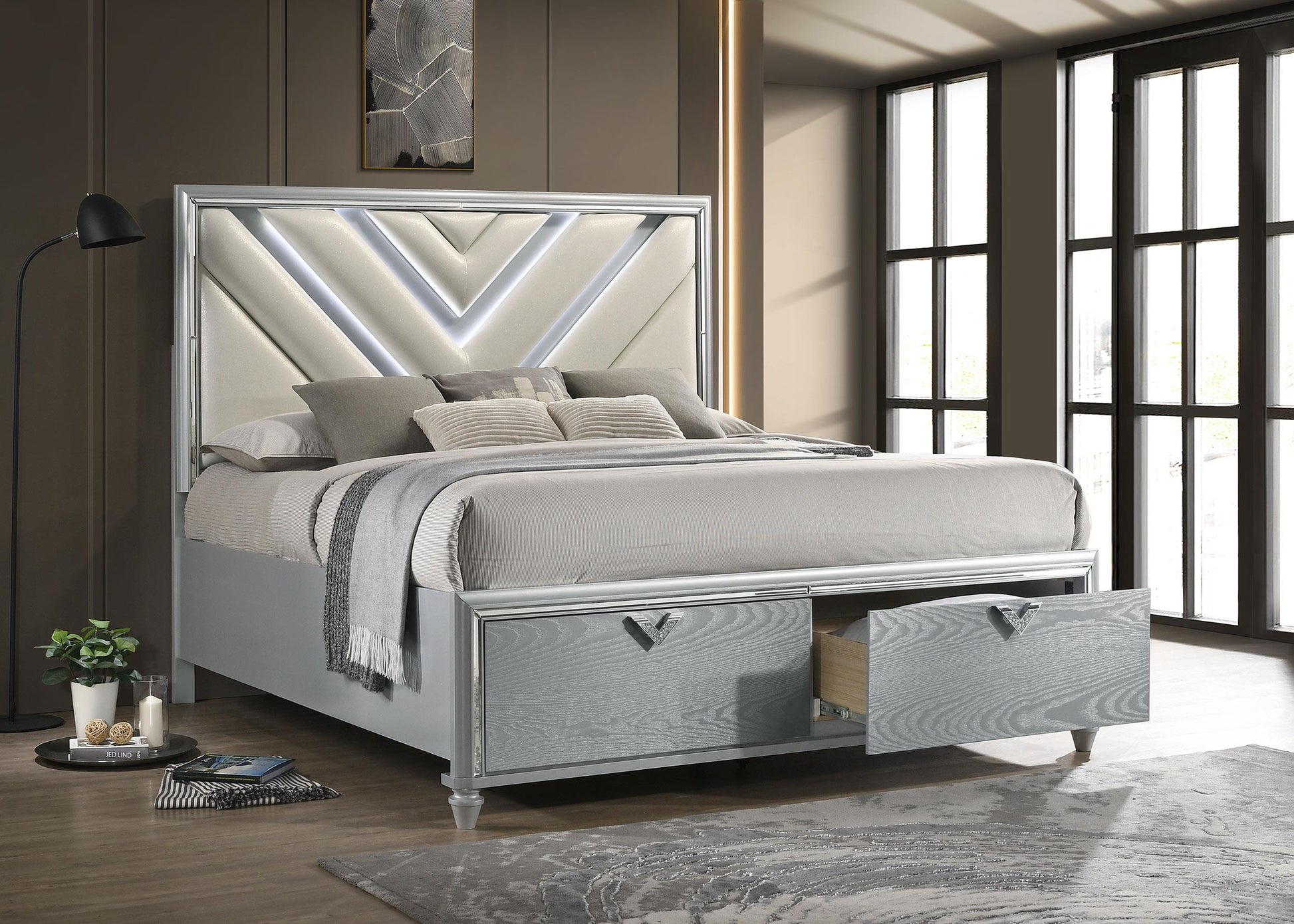 Veronica Wood Eastern King LED Storage Bed Light Silver